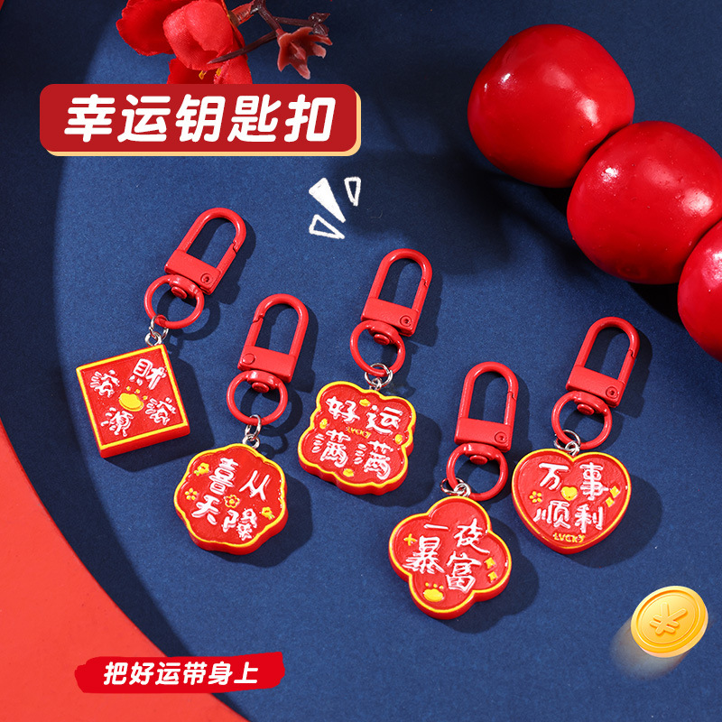 新年吉祥文字キーホルダー赤いお祝い財源ゴロゴロ福ペンダントdiyペンダント吉祥アクセサリープレゼント