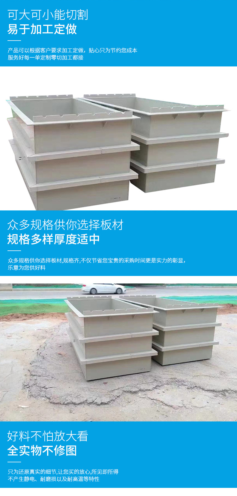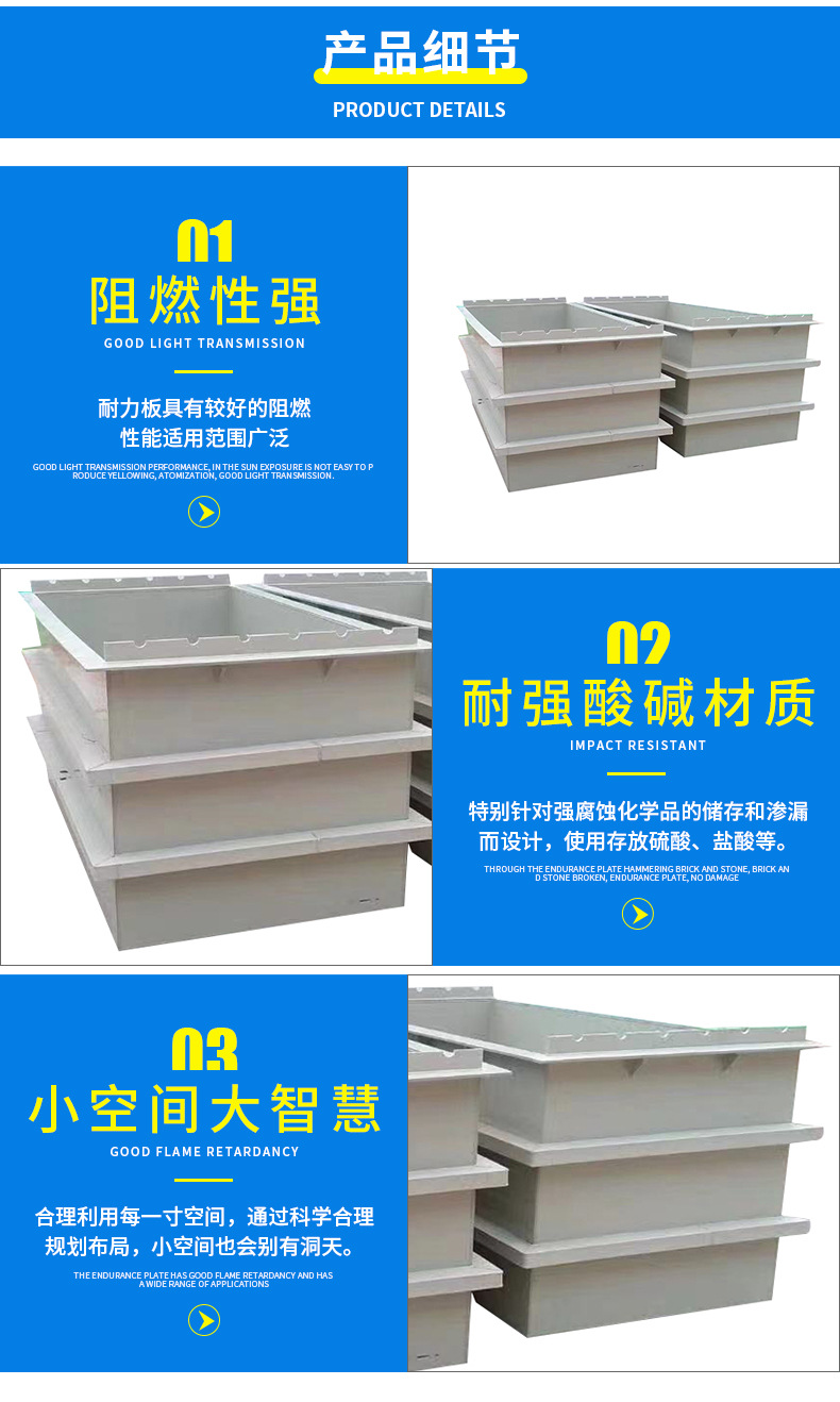 直接販売pp溶接水槽耐摩耗メッキ溝pp板酸アルカリ電解酸洗浄槽防腐pp溶接水槽
