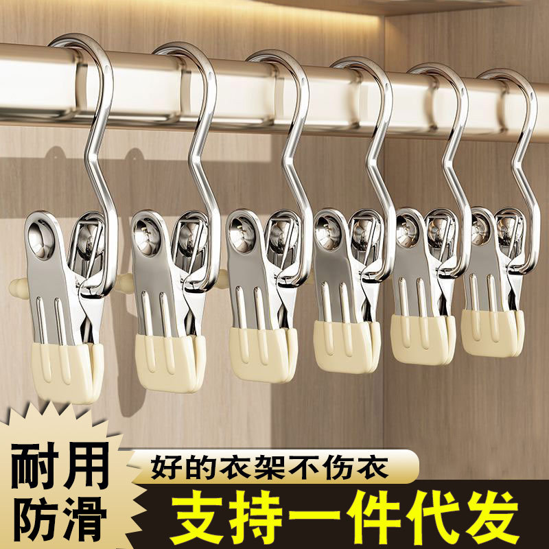 不锈钢晾衣夹子无痕多功能带钩帽子收纳短裤布料家居袜子晾晒挂钩