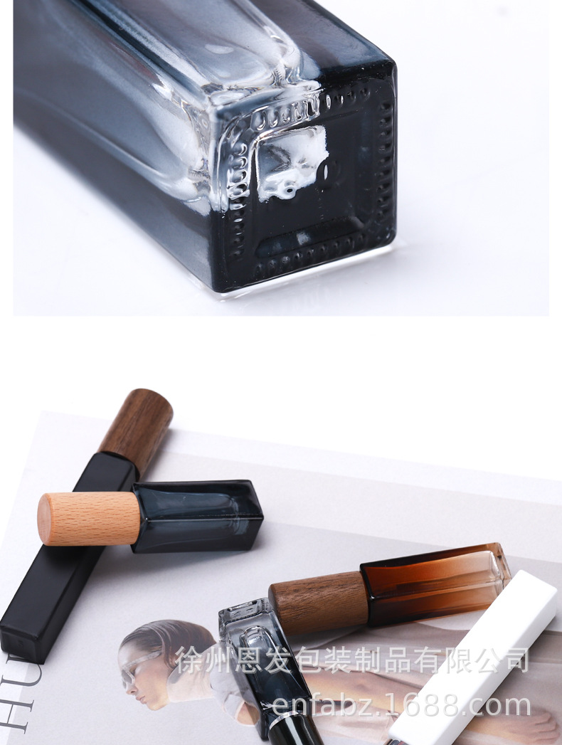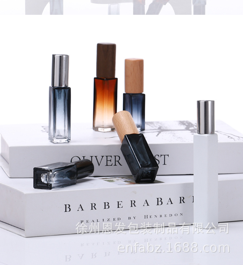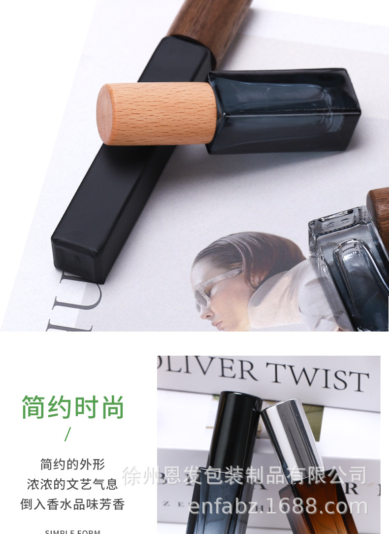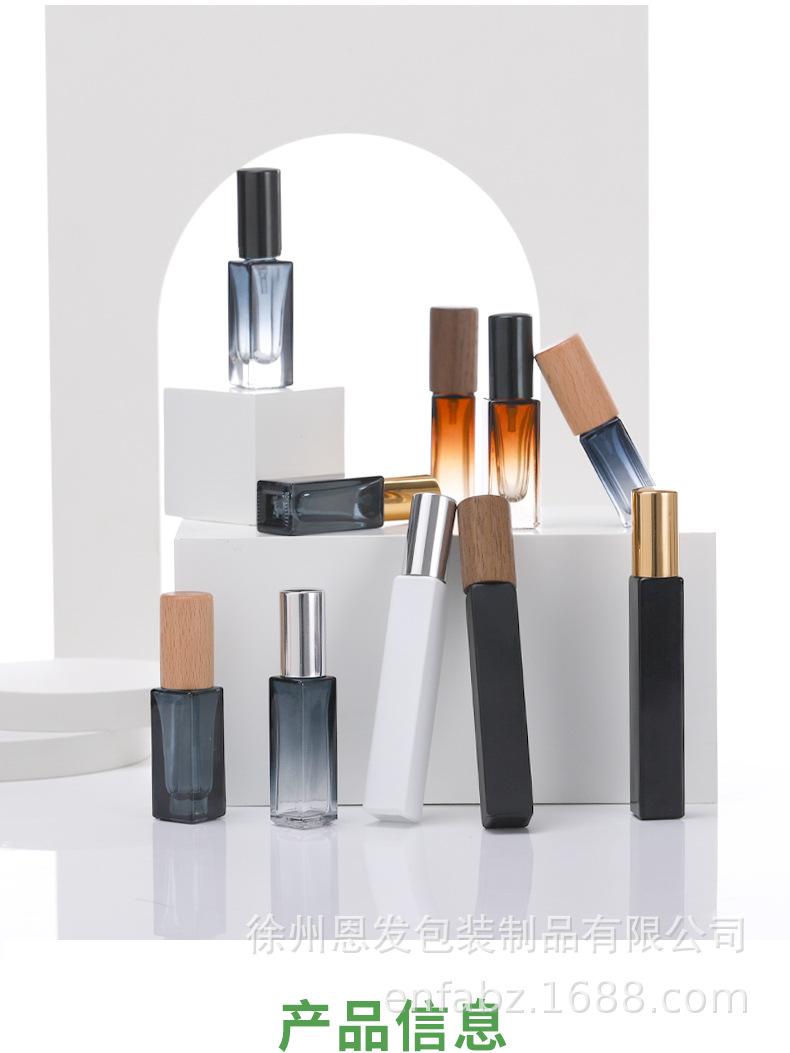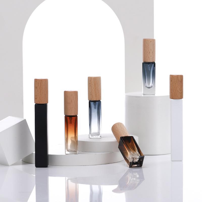 5ml 10mlグラデーション香水瓶胡桃木蓋香水サンプル瓶グレー茶色ケヤキ蓋スプレー瓶