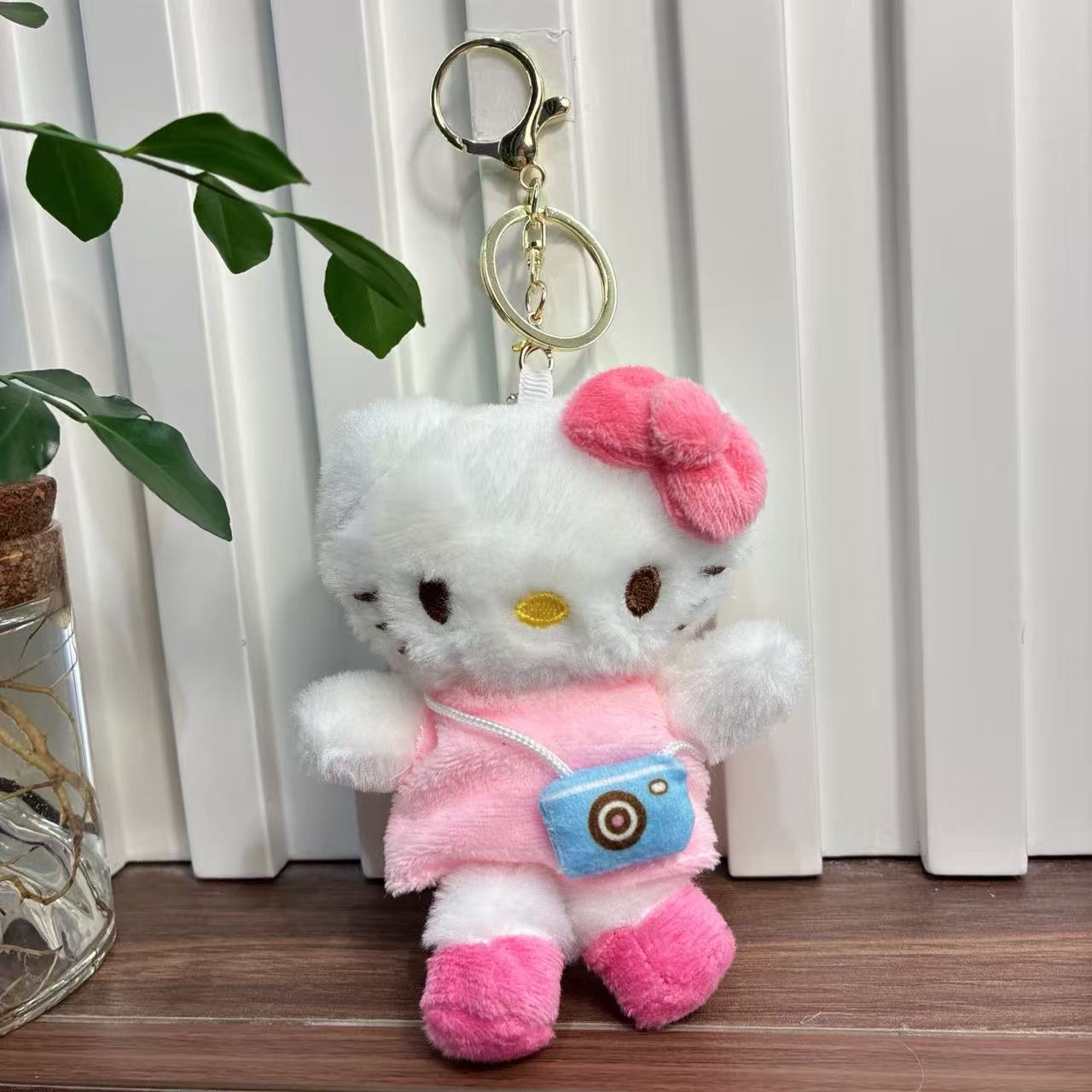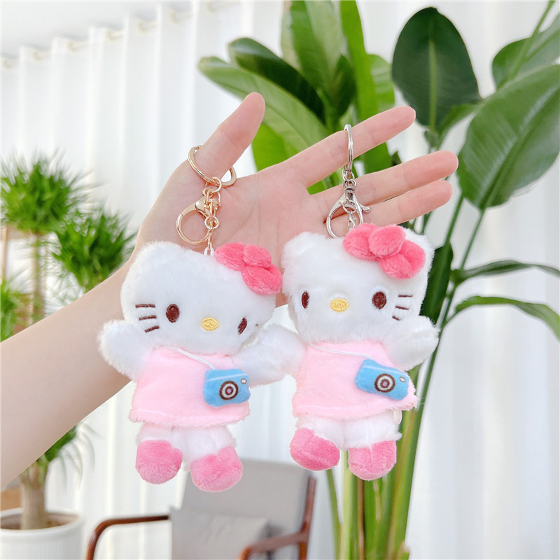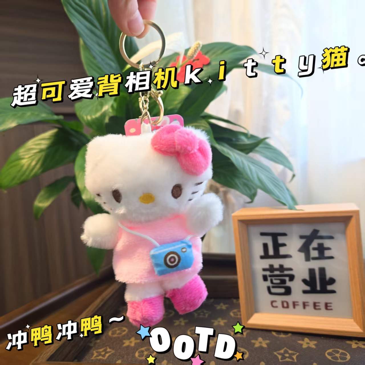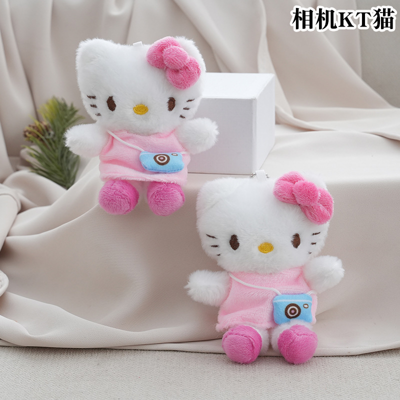 三丽日系可爱兔绒kt猫毛绒玩具精品爪机娃娃照相机挂件公仔钥匙扣