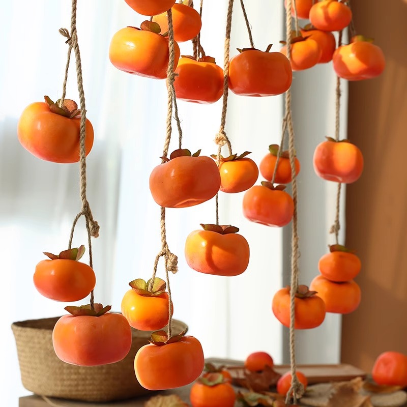 新款仿真柿子串柿柿如意挂件室内挂墙树枝悬挂墙面装饰节日喜庆