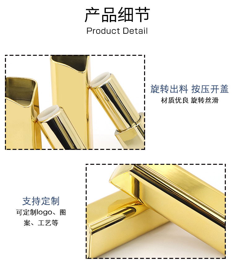 角型押しバウンス口紅管12.1mm口径口紅空管口紅管化粧品包装材