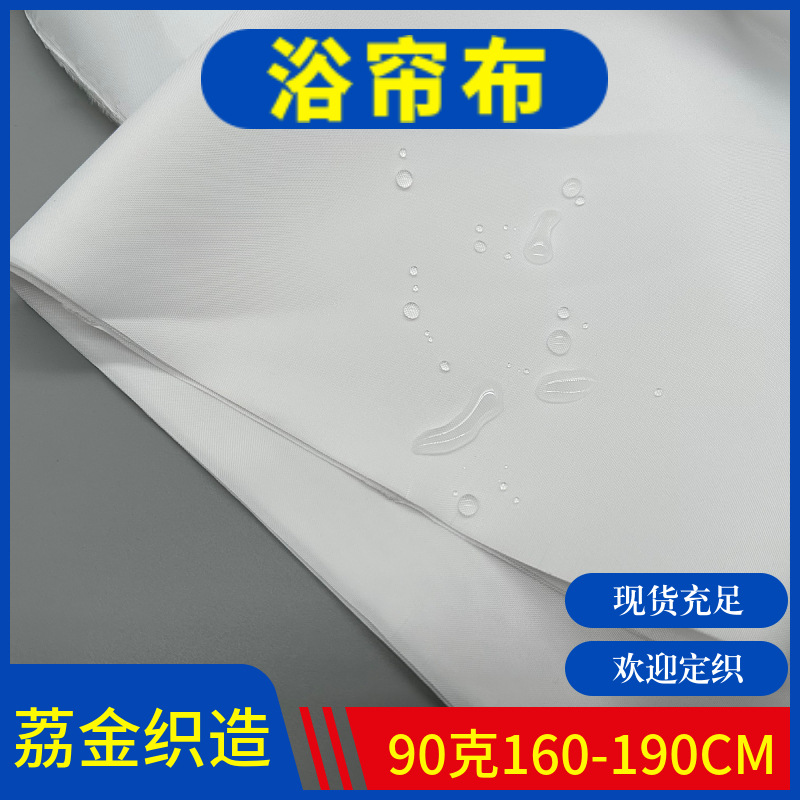 現品の白いデジタルプリントのシャワーカーテンの下の布の春の亜紡のポリエステルの布の90重の重さの防水の防かびのシャワーカーテンの布地