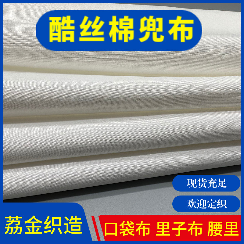 クールなシルク綿のポケット布の平織りポリエステルのクールなシルク綿の布地の風衣の綿の服のパーカーのズボンの腰の中の布地を供給します。