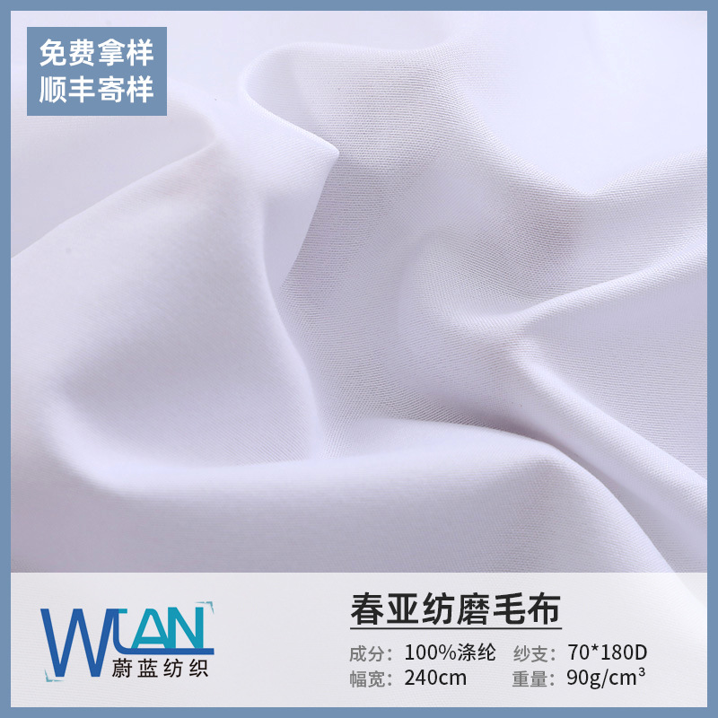 75D*150D全涤增白桃皮绒2m4幅宽90g磨毛布春亚纺布料沙滩裤底布