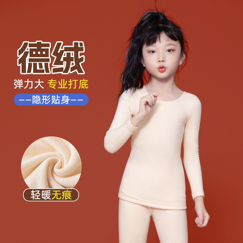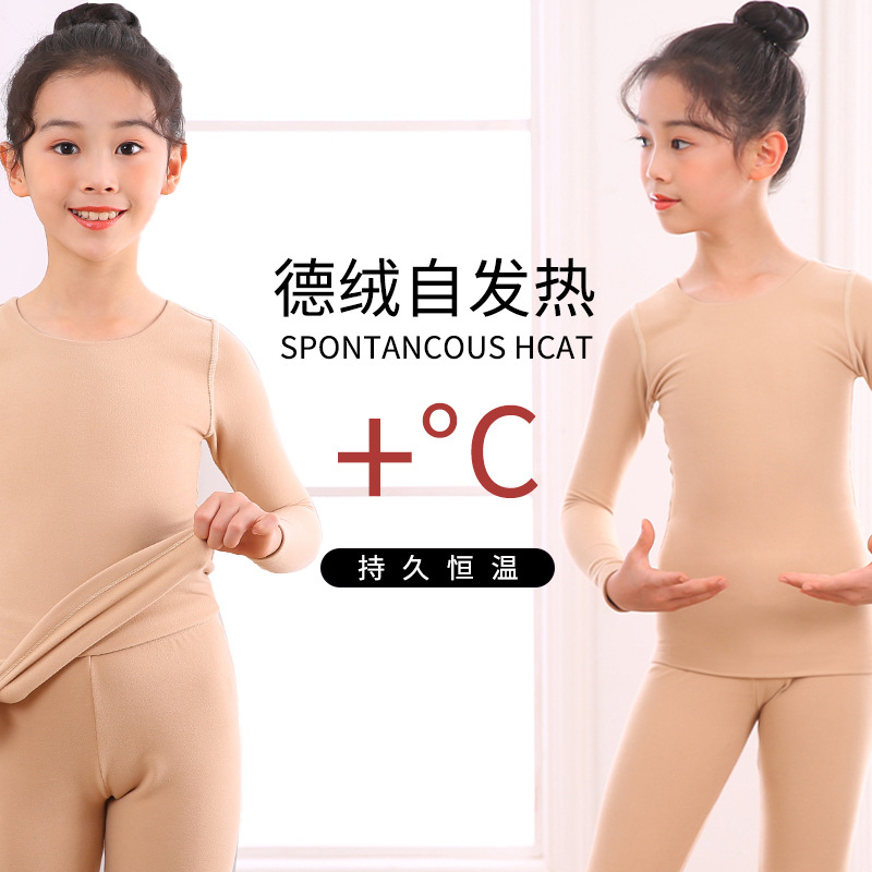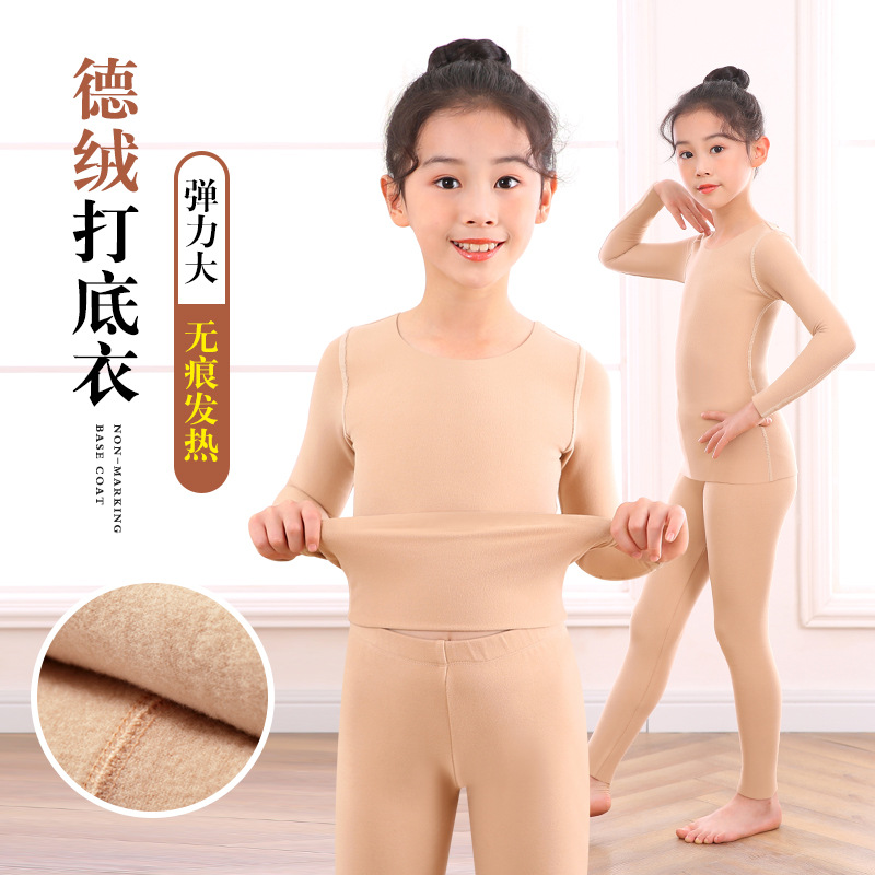 徳絨保暖衣子供の肉色の底のシャツに傷がない女の子の冬の秋の服の秋のズボンの中の大きい子供の肌着の下着のスーツ