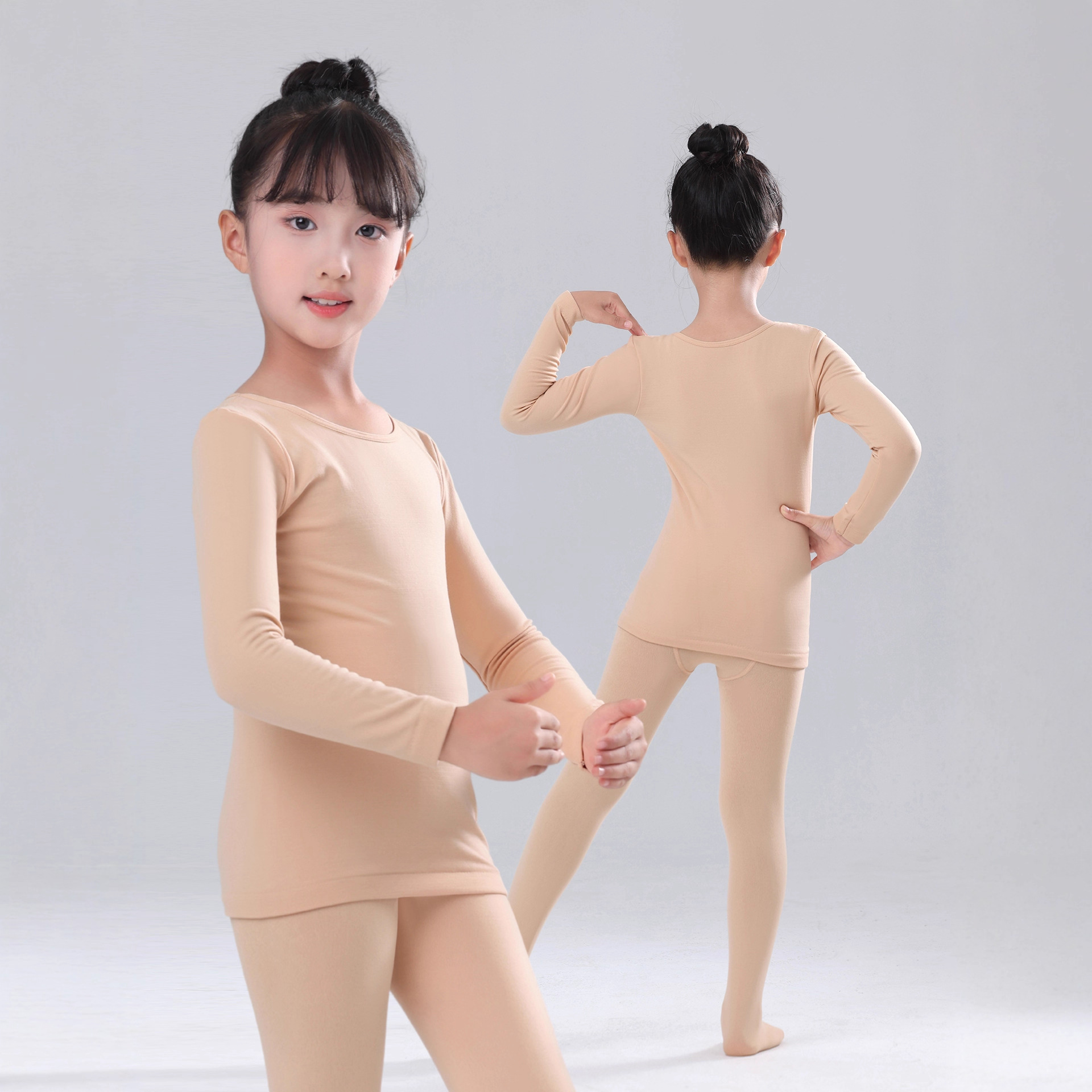 儿童肤色舞蹈打底衣肉色保暖内衣套装女童跳舞演出服练功加绒加厚