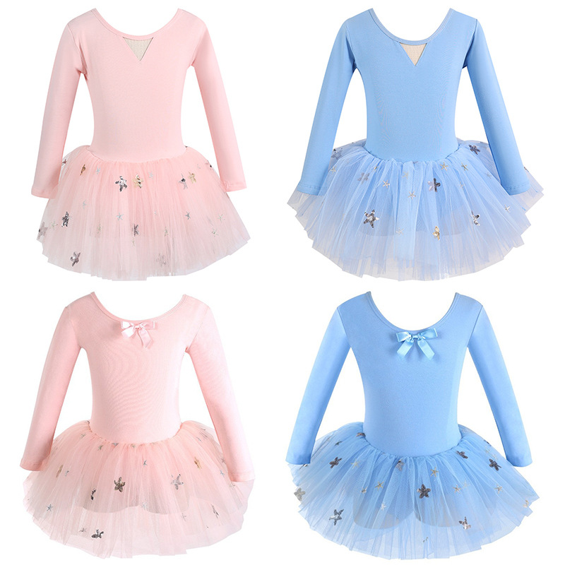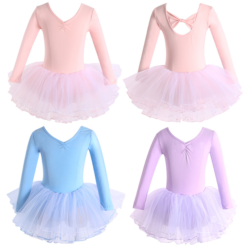 子供のダンス服の練習服の女の子の春秋長袖のバレエのスカートの受験級の幼児の中国のダンスのスカートの蓬蓬のスカート