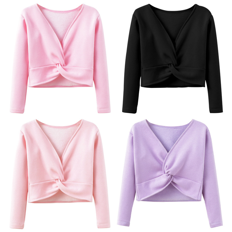 子供のダンス服の女の子の練習服秋冬の厚手のセーターのコートの長袖のベルベットのマントの肩の外で合わせます。
