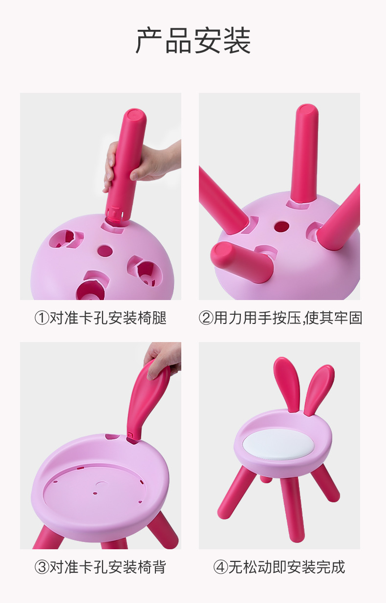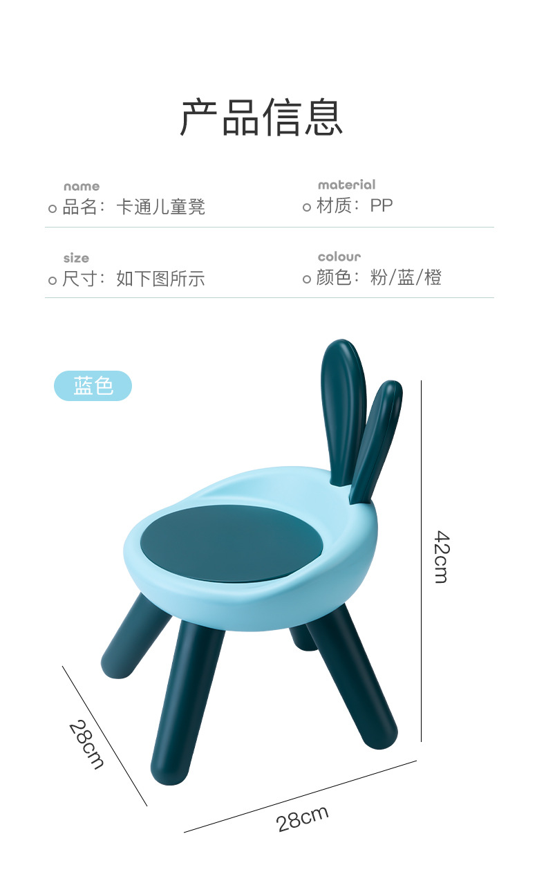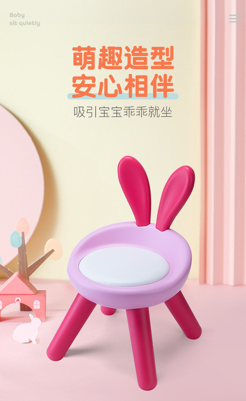ウサギの耳椅子幼稚園漫画小さな椅子背もたれ付き赤ちゃん椅子子供用プラスチック小さなベンチ家庭用滑り止め