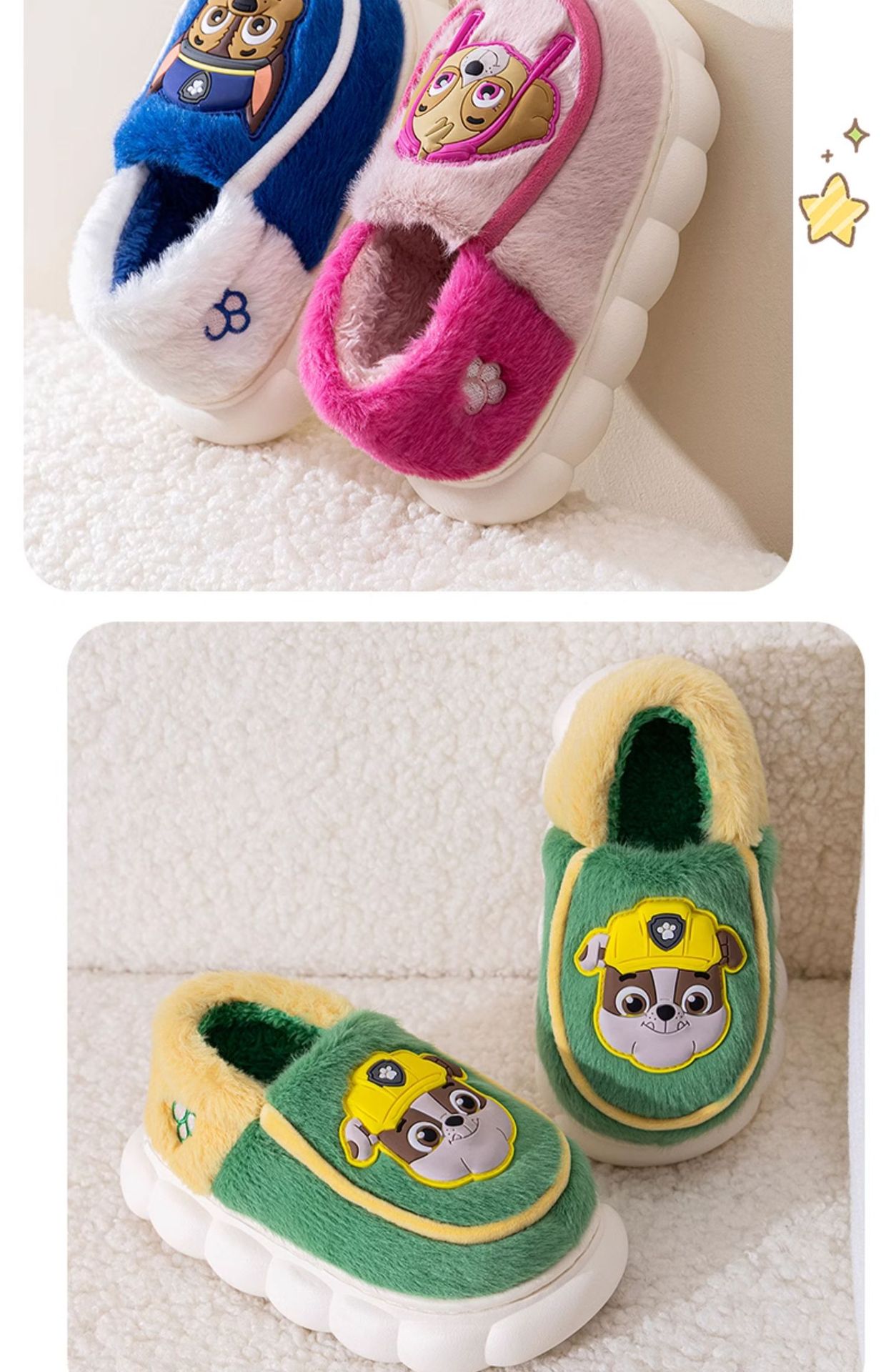 パウ・パトロール大活躍!子供用綿スリッパ 冬の新作 女の子向け漫画柄 男の子向けスリッパ 滑り止め 裏起毛 防水綿スリッパ