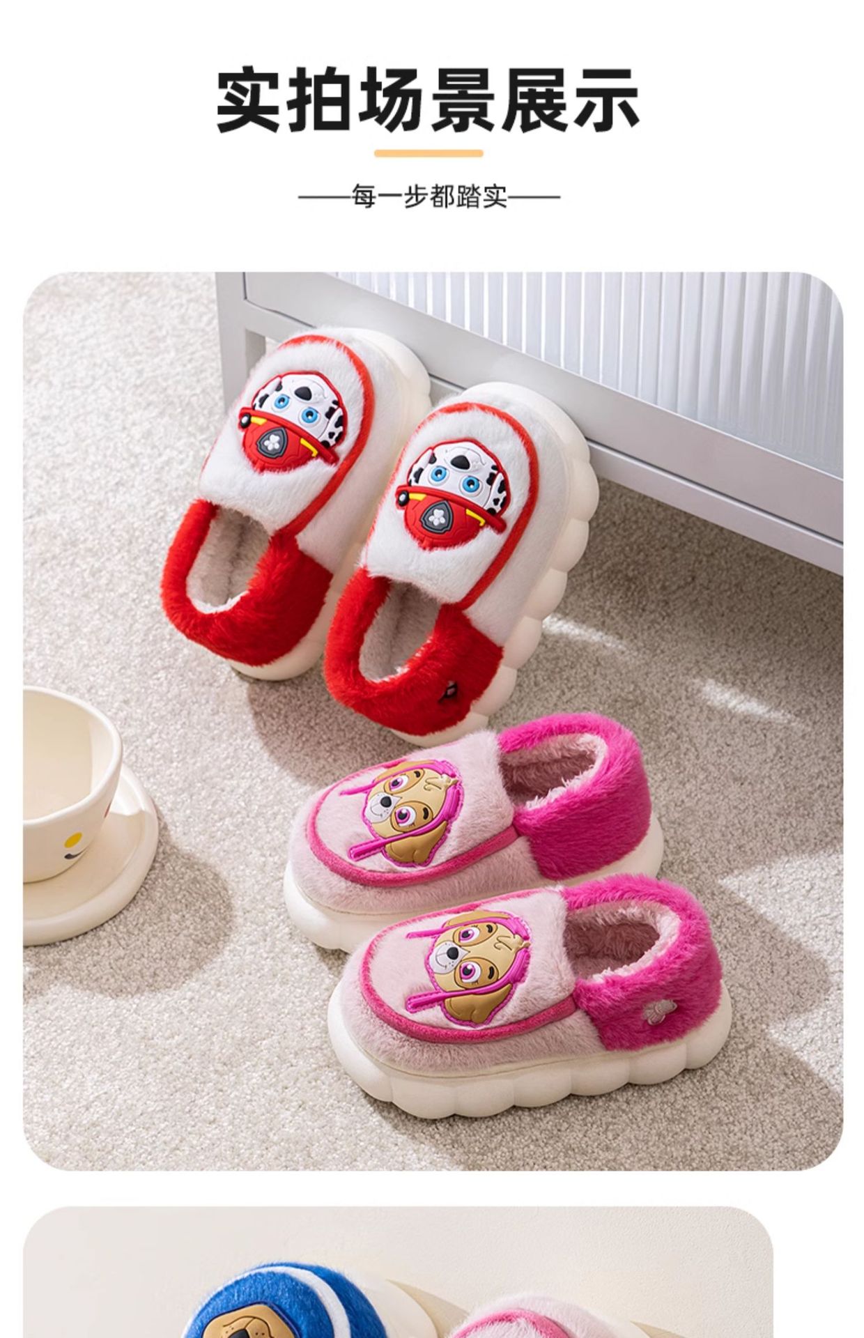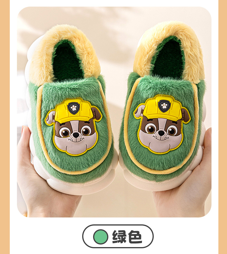 汪汪チーム立功子供綿スリッパ男の子の女の子の滑り止め毛はベルベットの保温滑り止め子供がスリッパを支えている
