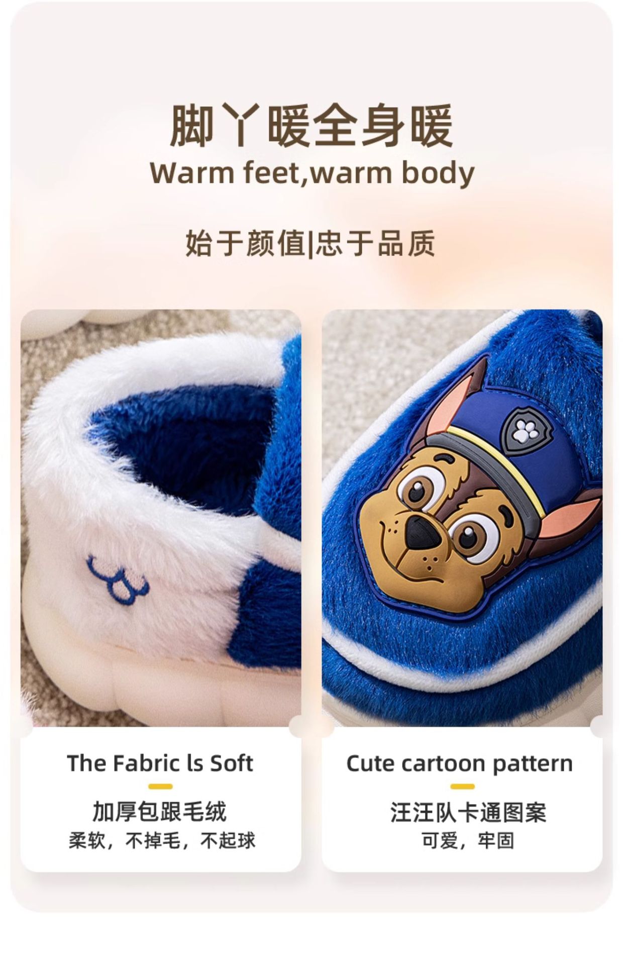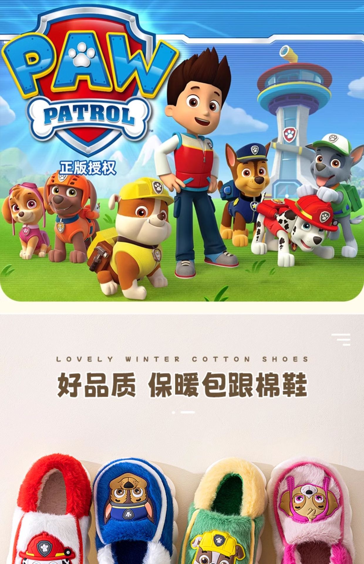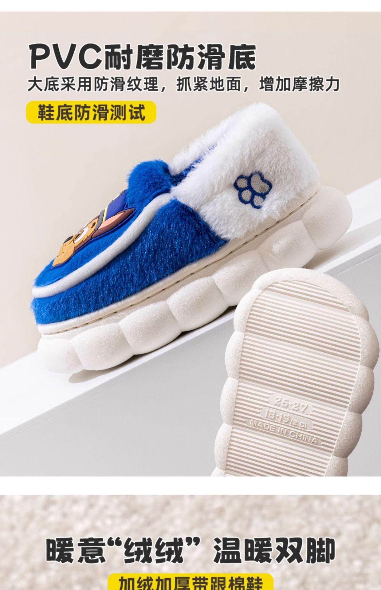 (严选)汪汪队儿童棉拖鞋包跟男童秋冬室内防滑保暖卡通家居棉鞋