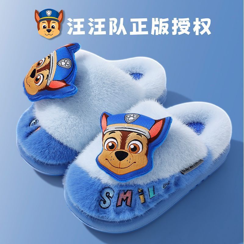 汪汪队立大功棉拖鞋儿童秋冬季男童居家室内防滑地板女孩毛绒拖鞋