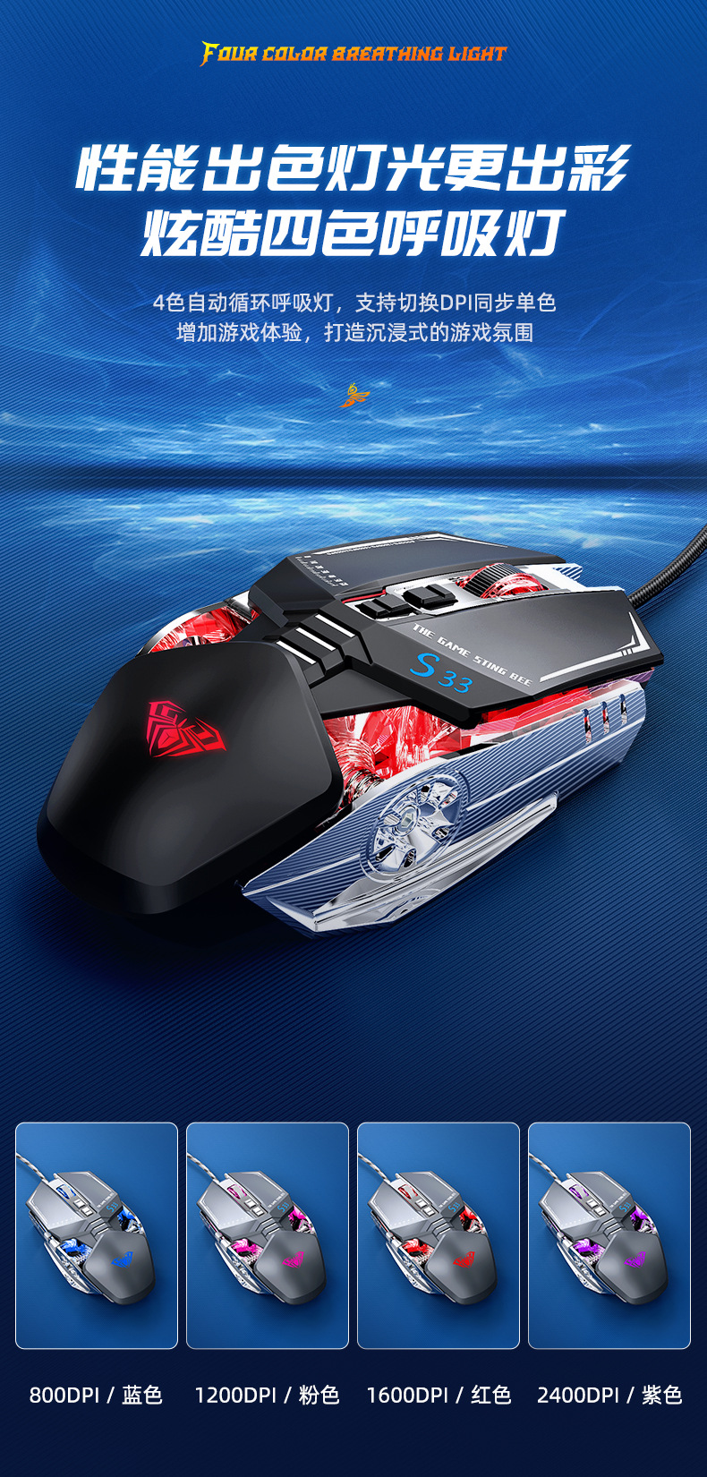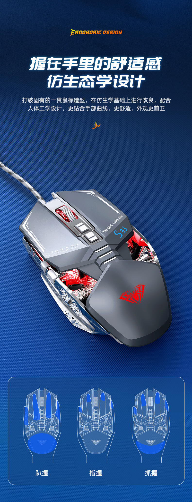 タランチュラS33機械ゲームマウス有線金属底加重発光電気競争ビジネスデスクトップノート