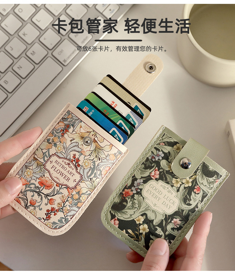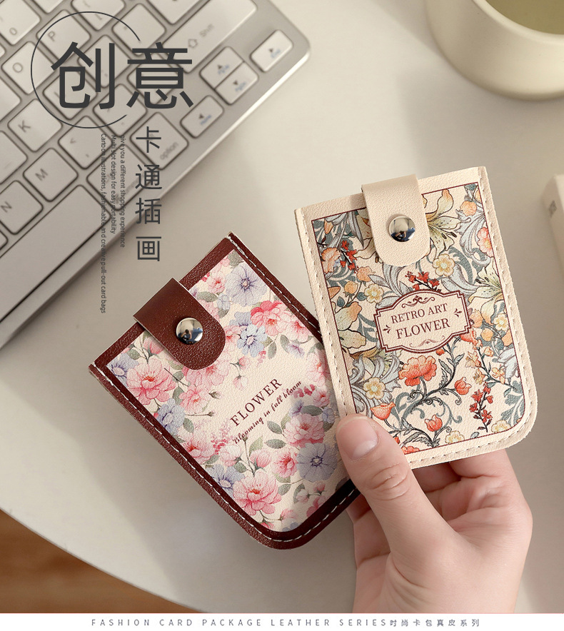 2024新型花卉カードバッグ女性復古油絵多卡位銀行カードバッグ証明書バッグ大容量カードバッグ