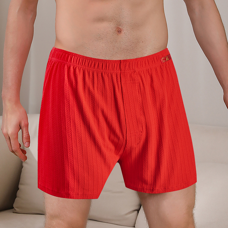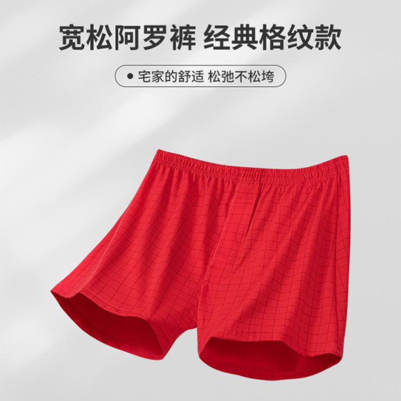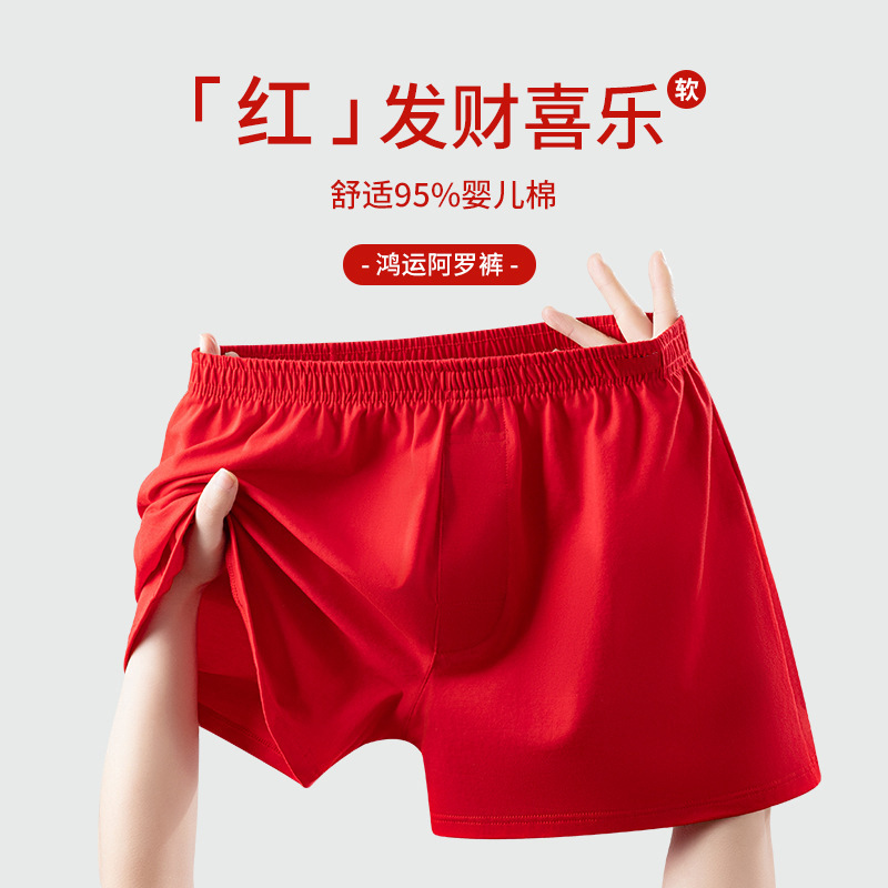 本命年大红男士阿罗裤宽纯棉高档大红男士内裤大红四角裤一件代发