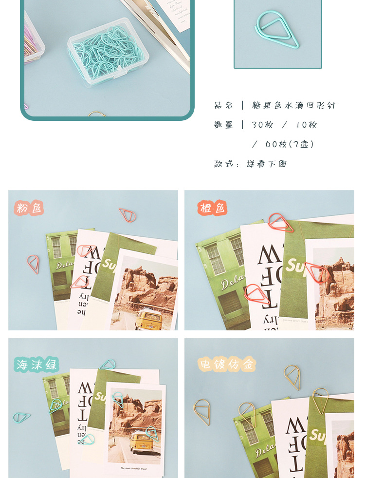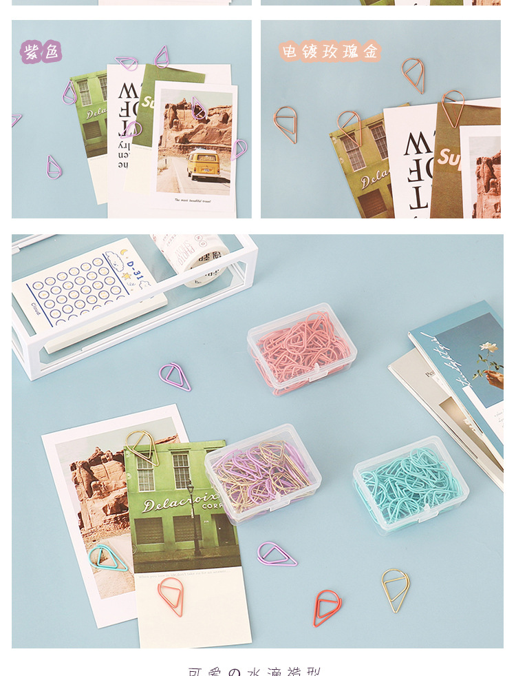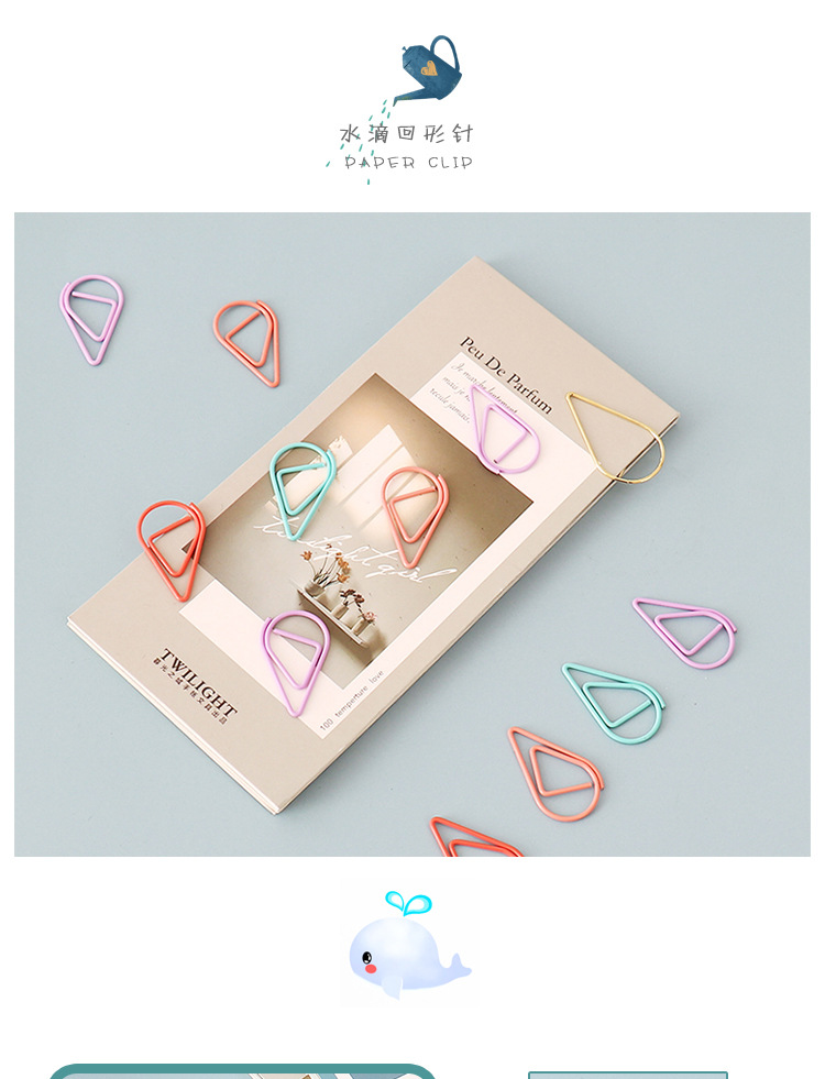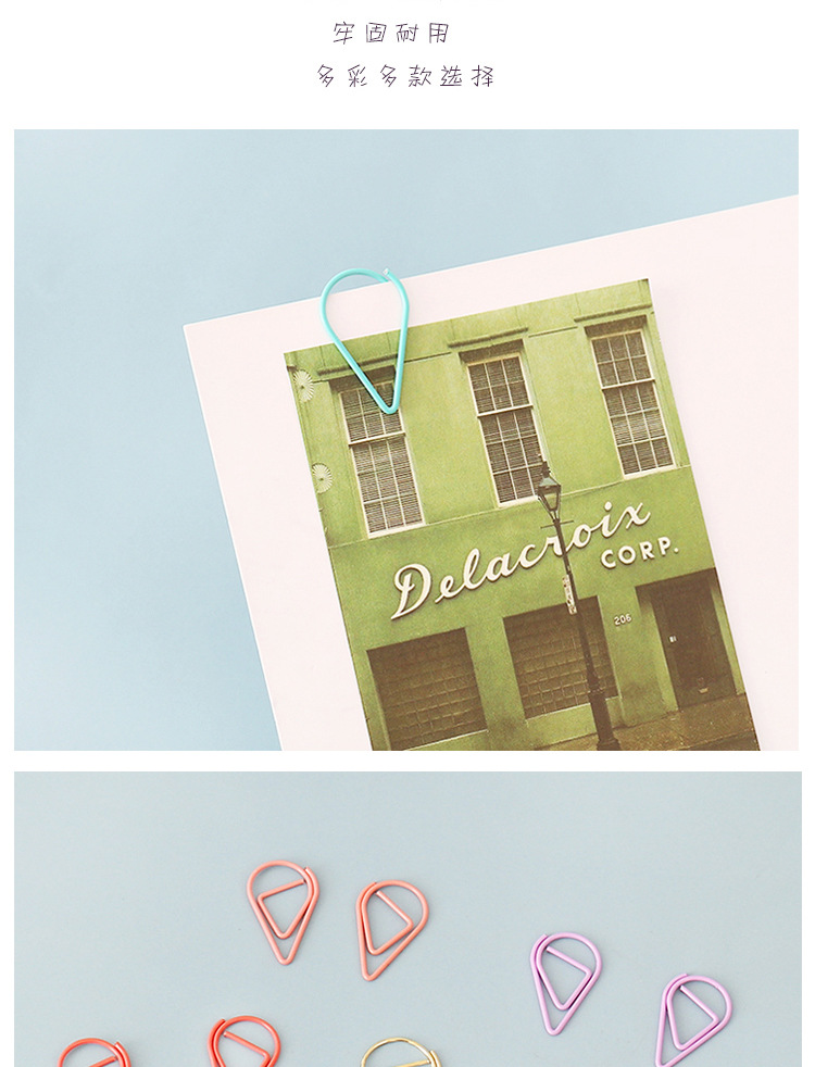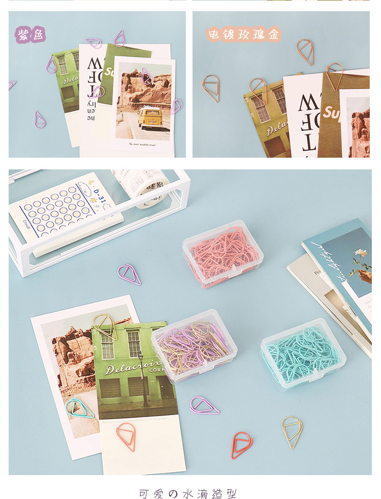 国境を越えた直接供給の金属製カラフルな水滴型ペーパークリップ、クリエイティブでキュートな漫画風オフィス収納、手帳用しおり