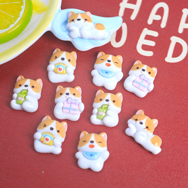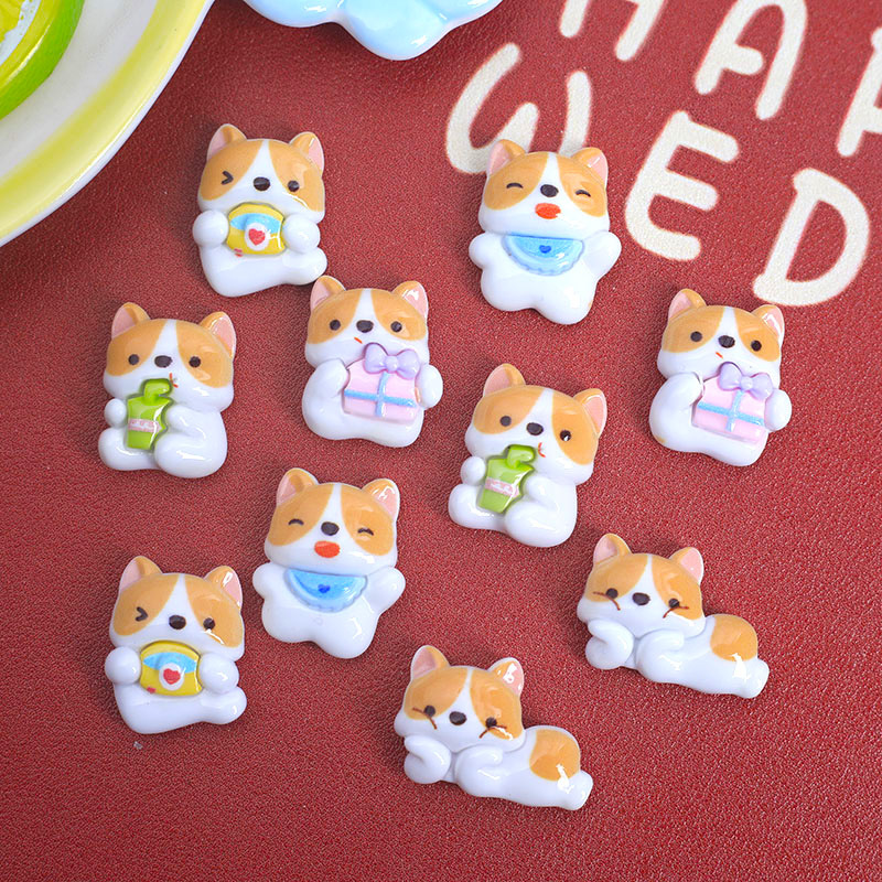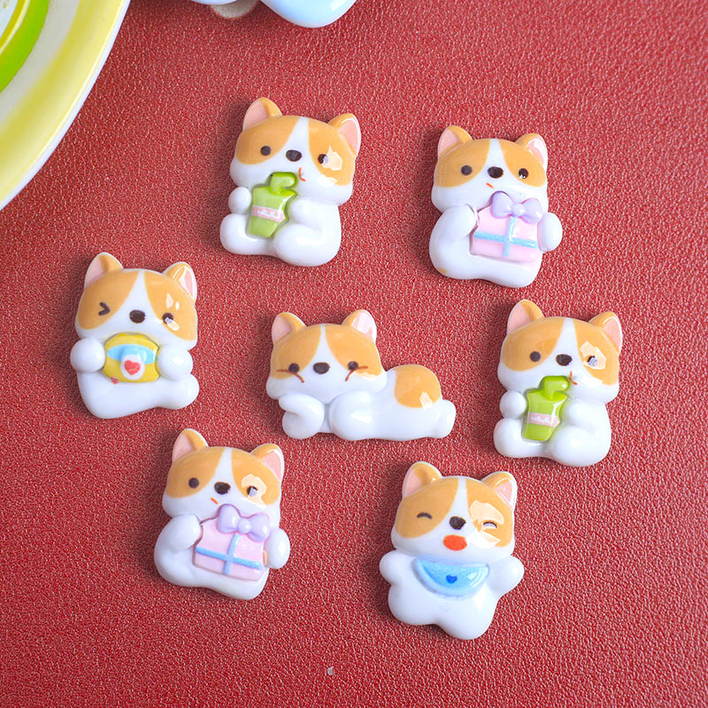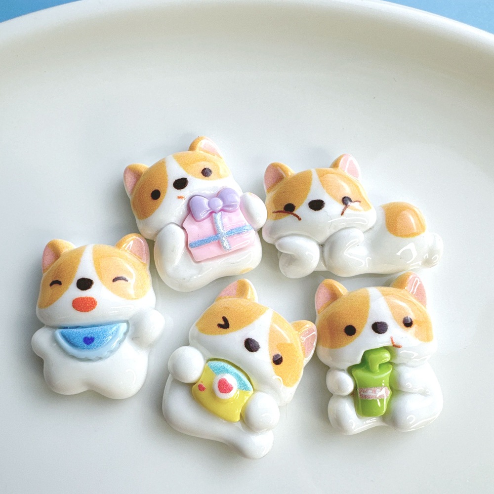 かわいいよだれかけのコーギーの子犬のdiyクリームの携帯電話の携帯電話のキーは靴のボタンのヘアピンの樹脂のアクセサリの部品を掛けます。