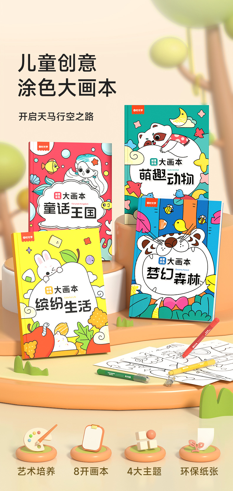 タイムオプティカル クリエイティブぬりえ大判画集 幼稚園8開サイズ落書き絵本 子供向け知育ぬりえ