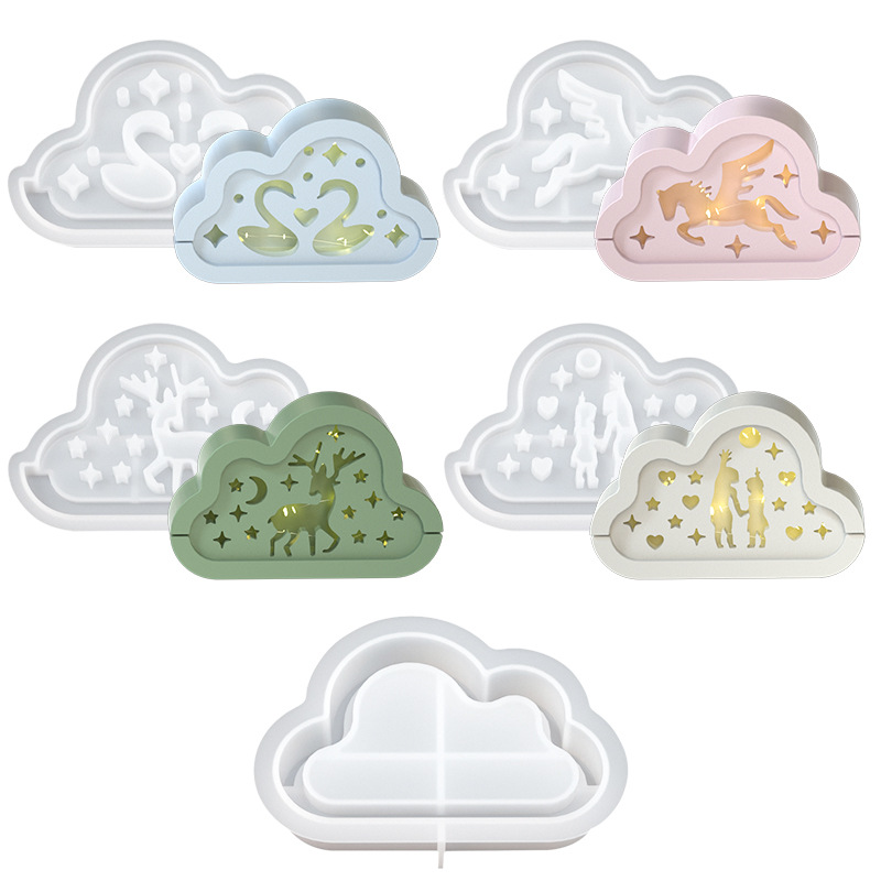 雲の白鳥のユニコーンのヘラジカのカップルのシルエットの明かりのシリコンの鋳型のdiy石膏の小さい夜の明かりは部品を並べてゴムを垂らして磨いています。