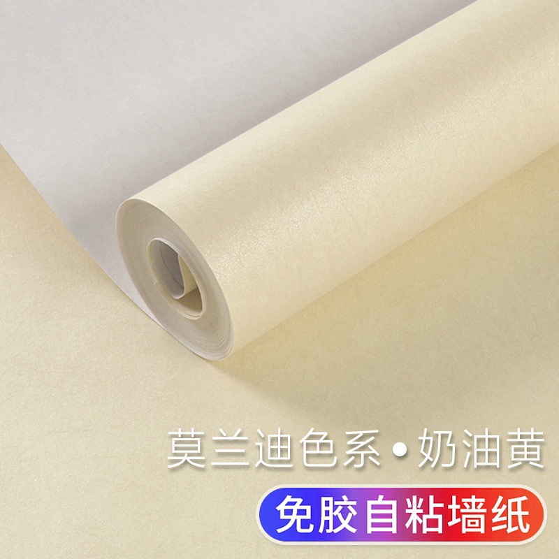 クリーム風の自己粘着壁紙ベージュ色の壁のステッカー純色のシンプルな寝室のリビングルームの家庭用厚手の壁の壁紙