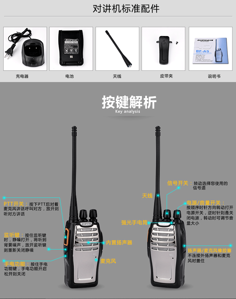 宝鋒宝峰トランシーバー遠距離5w大出力ハンド台屋外工事現場山岳地帯無線e 80 usb充電