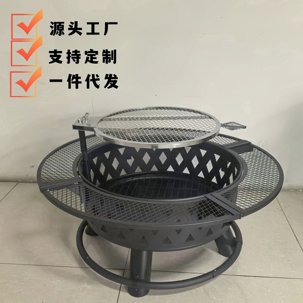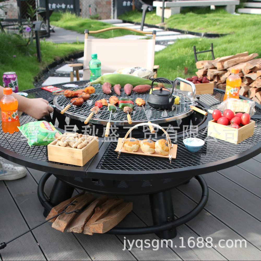 大型圆形炭火围炉煮茶烤炉烤盘可转动烧烤篝火盆炉子庭院烧烤炉