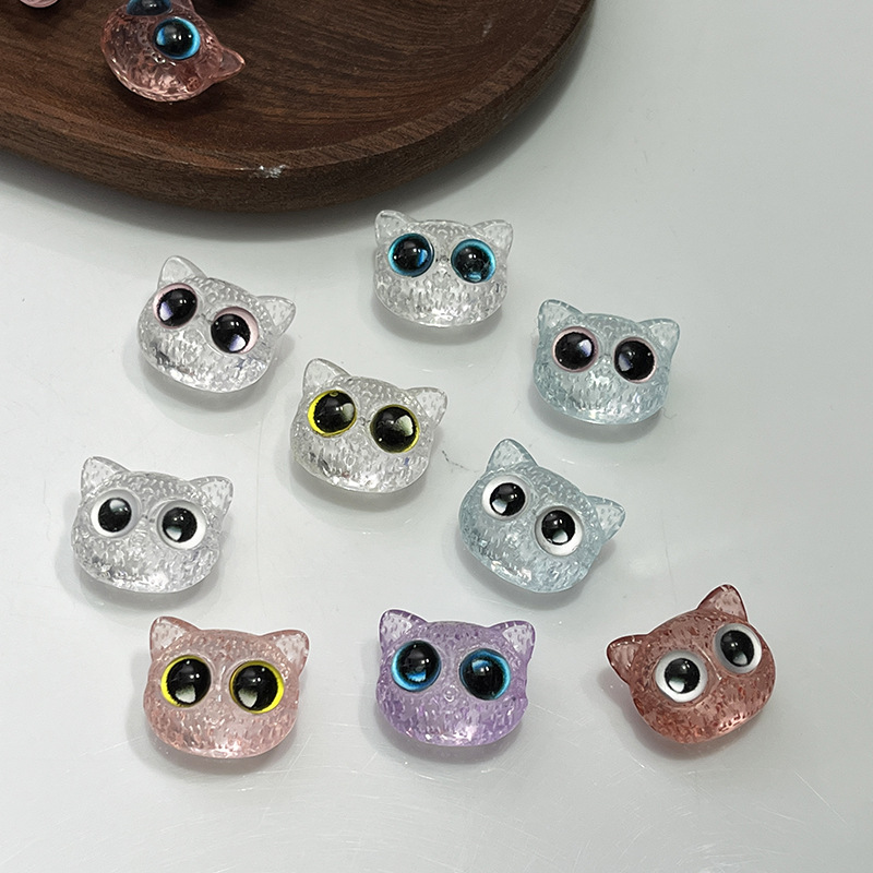 かわいい漫画の樹脂の透色の小さい野良猫の側の穴の猫の頭のDIYの手作りのビーズのブレスレットの携帯電話のチェーンの材料の部品