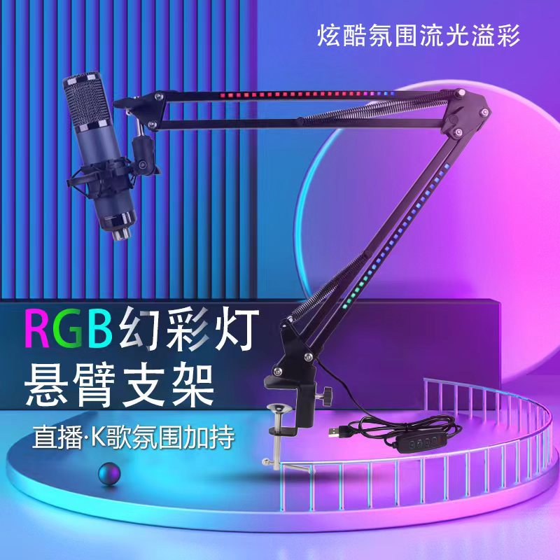 マイク自在折りたたみスタンド携帯電話コンピュータゲームライブ映像調整可能rgbライト付きアームブラケット