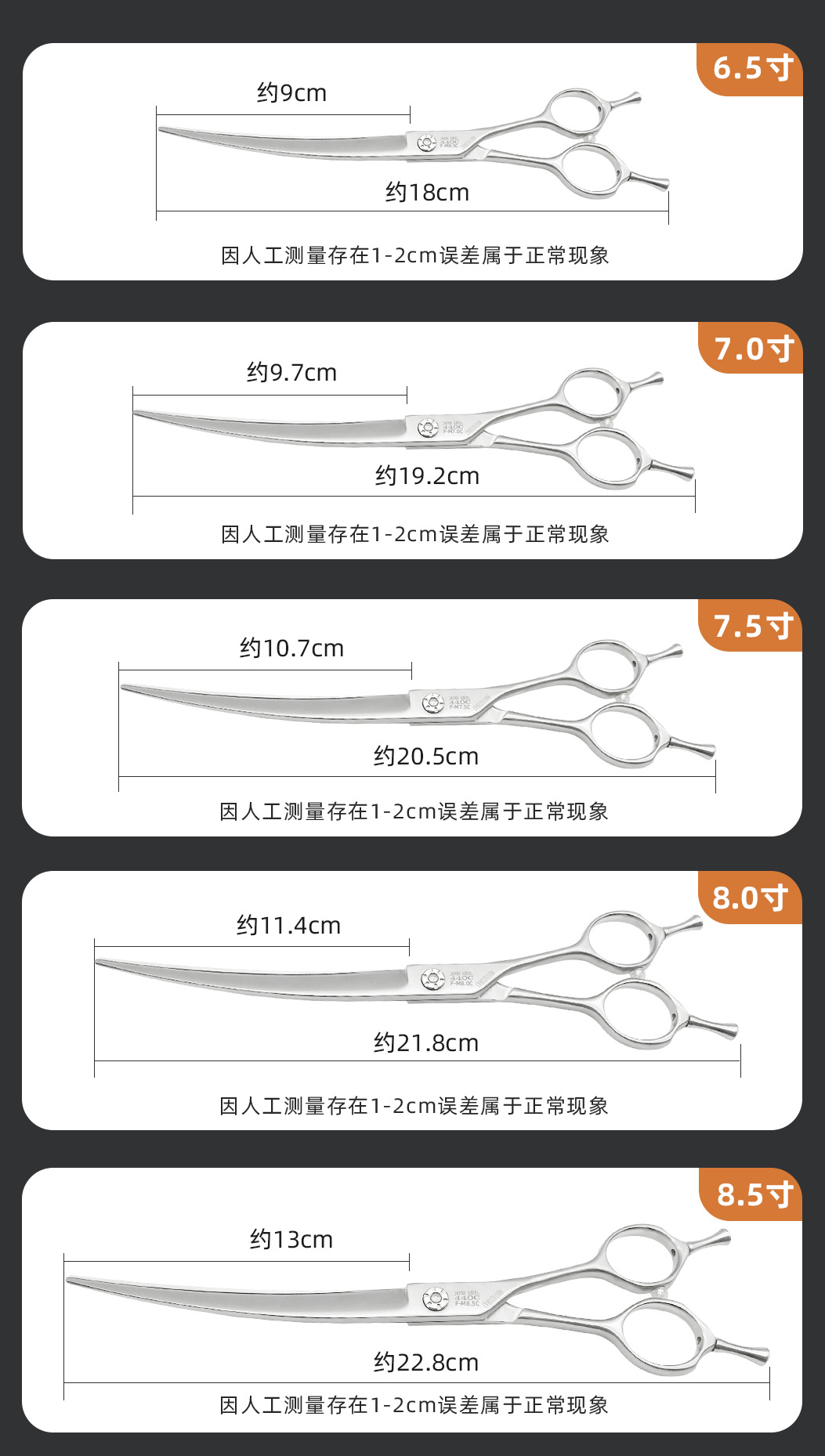 Cy寵縁曲げカットペット美容ハサミF-M7.5C大曲げカット7インチ曲げカット日本輸入440c高炭素鋼