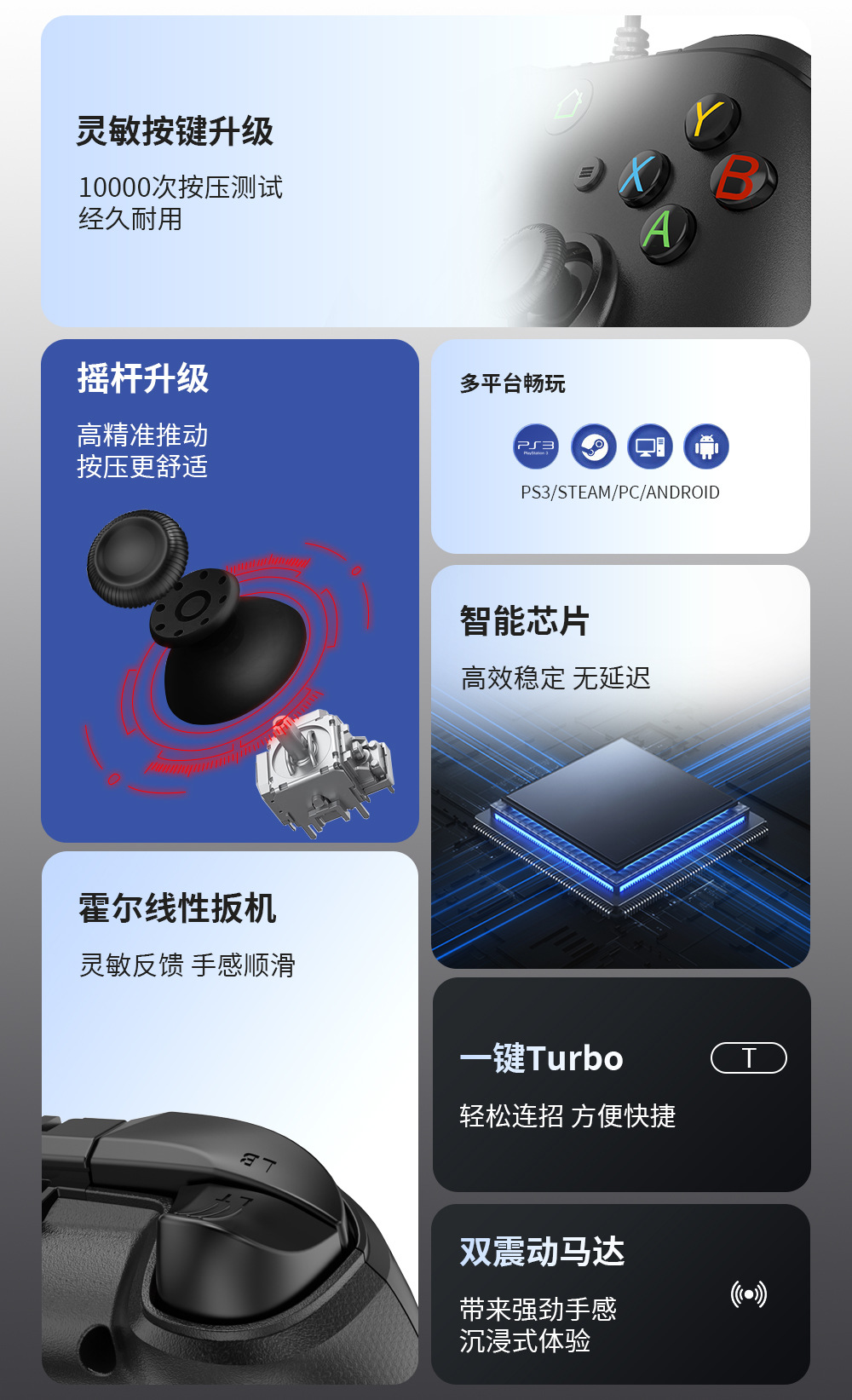 PC360 PC版 P3 Android ゲームパッド マクロ定義プログラミング デュアル振動 マルチプラットフォーム対応