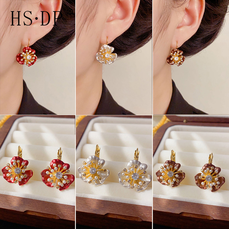 复古时尚镶钻珍珠花瓣耳扣女个性轻奢甜美温柔百搭高级感耳环批发