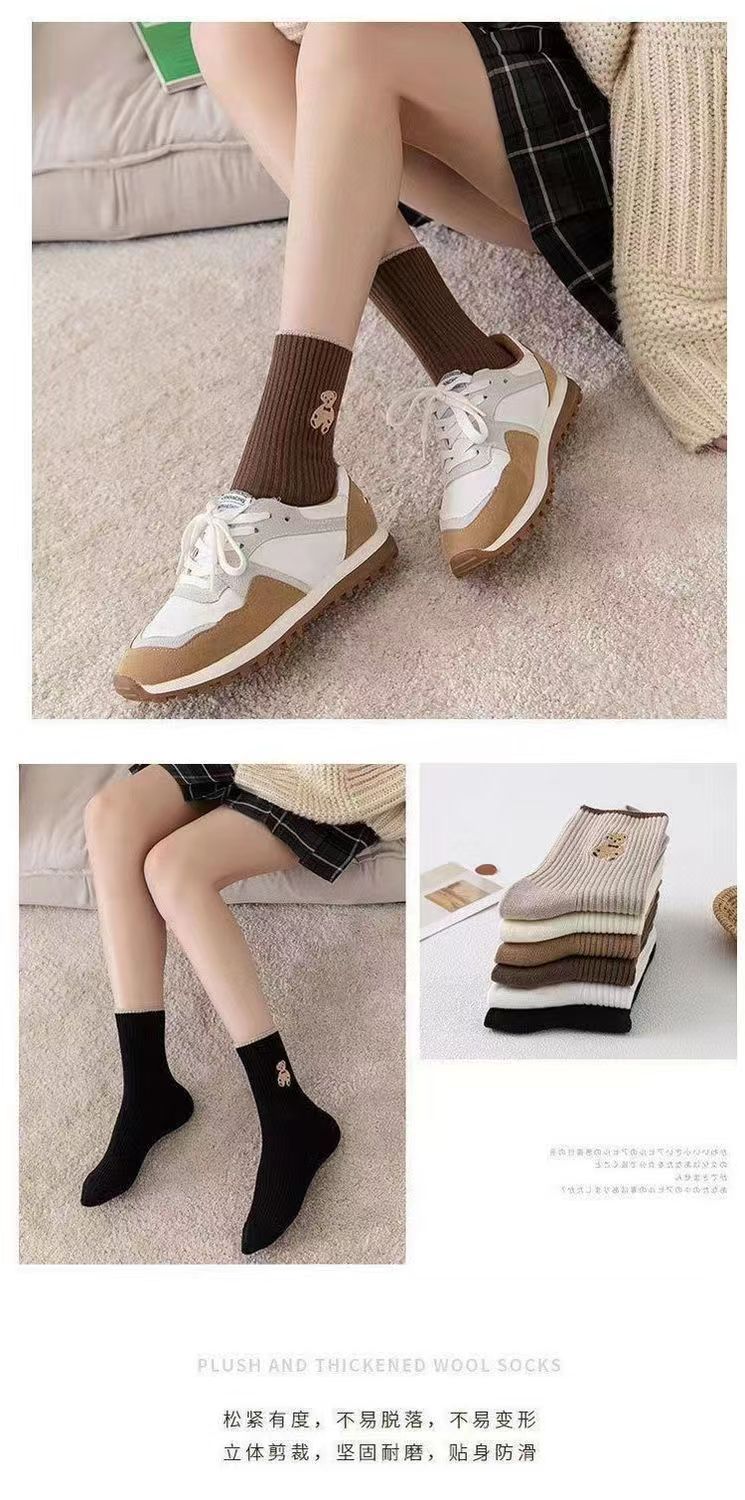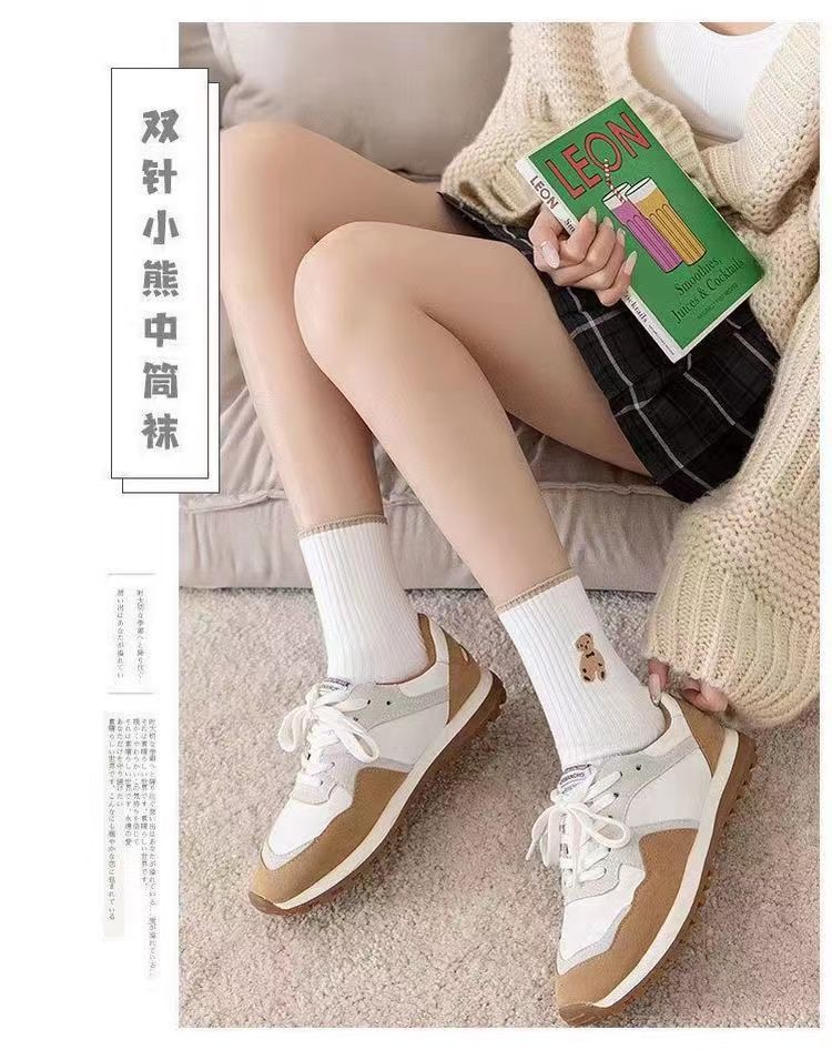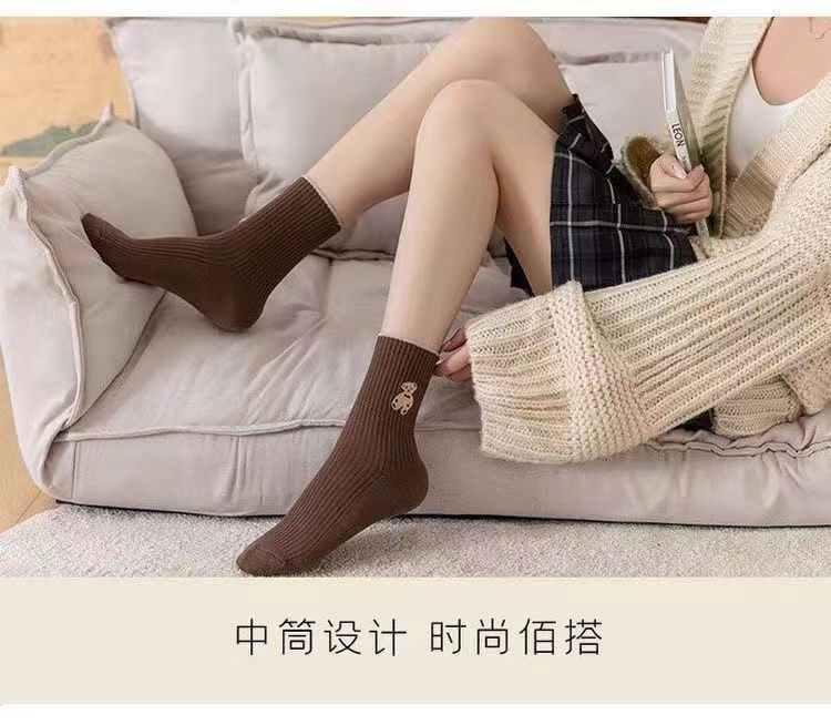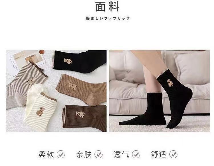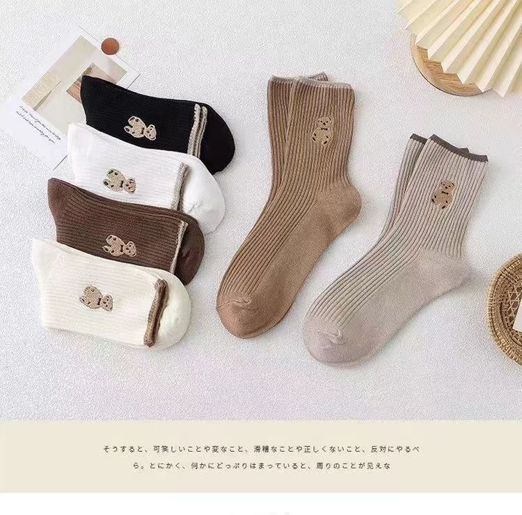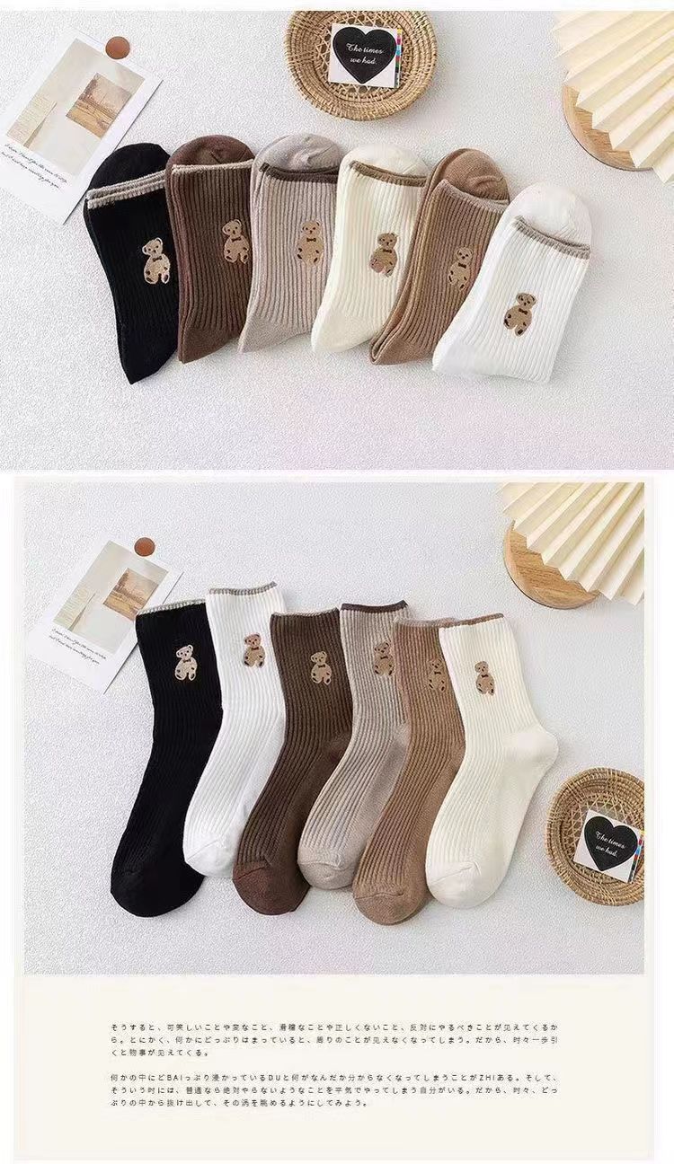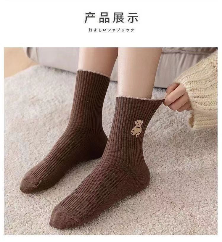 諸暨ソックス ミドル丈 韓国風 学生向け 可愛い漫画風 テディベア柄 春秋冬 ハイソックス カジュアル ロングソックス