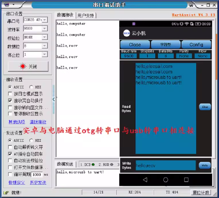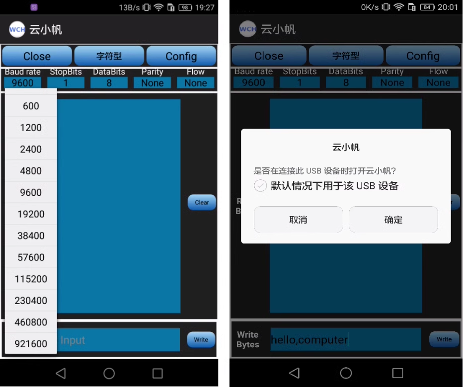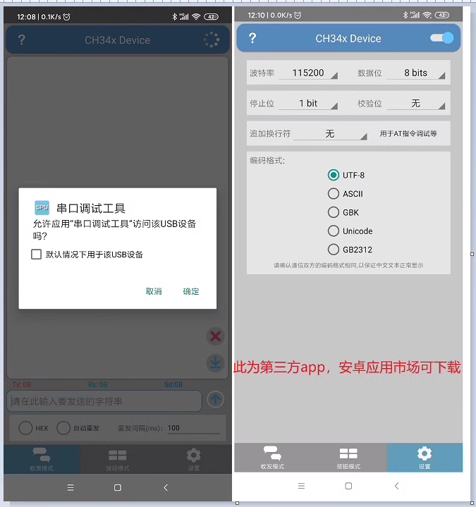 3. 用安卓串口调试工具测试开发板,只需要接开发板debug串口即可,省去了必须用电脑带来的不便(网盘提供下载),编码可调,支持中文!