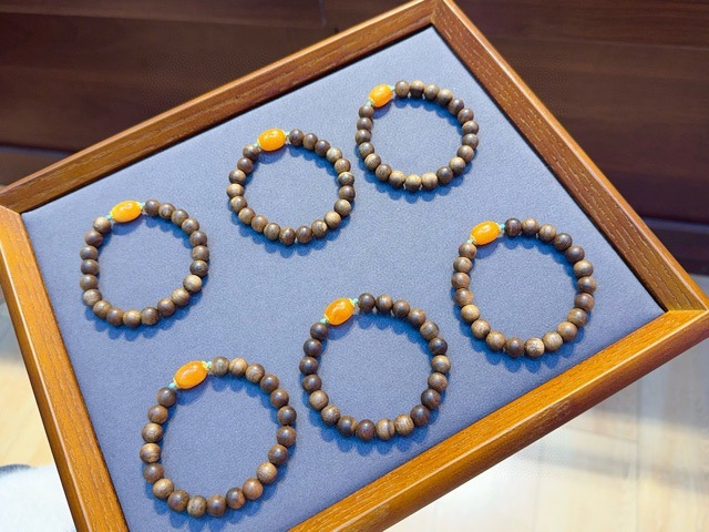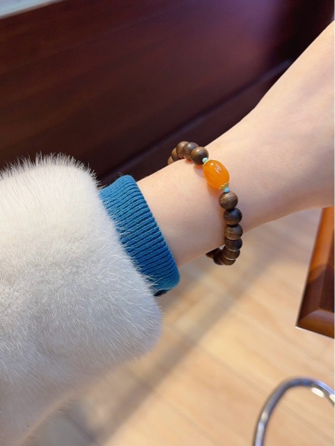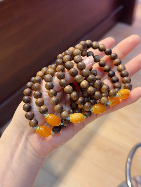 沉香木手串配橘皮老蜜蜡 文玩手串批发随型藏式奇楠沉香木手串批