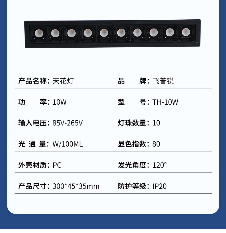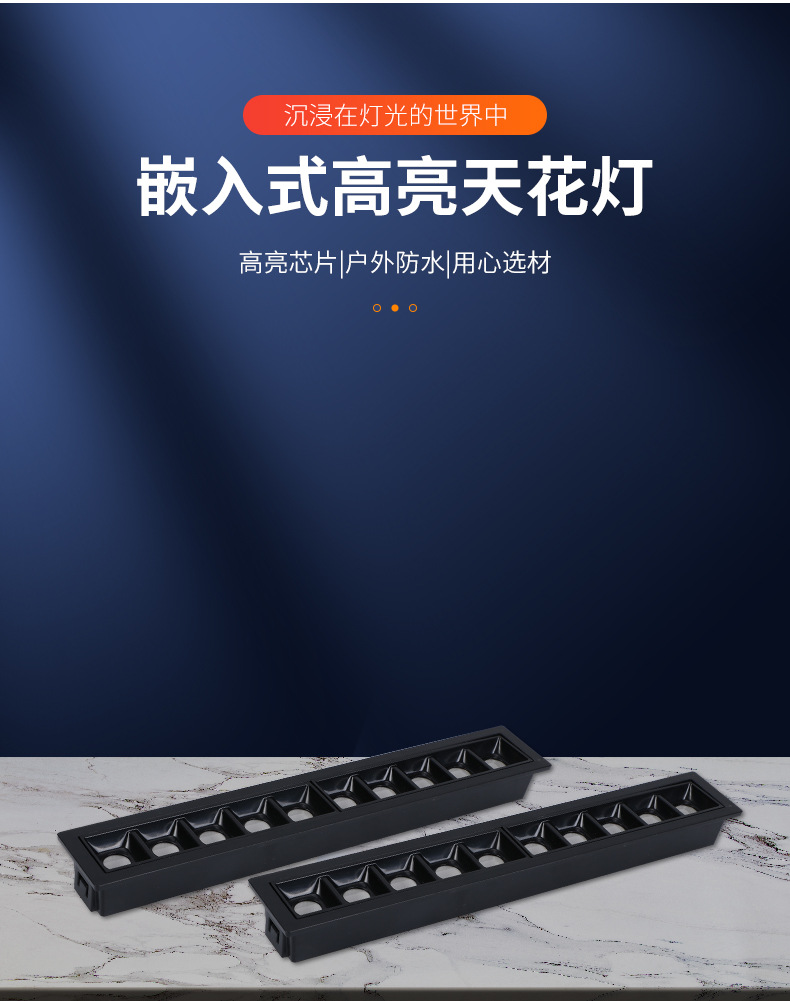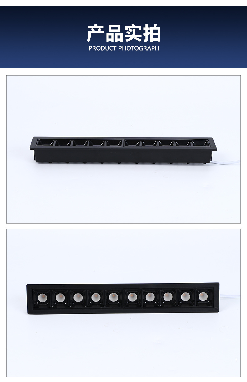 メーカー直供埋め込み式ハイライト天井灯客間照明無主灯洗壁灯卸売り長方形グリル灯