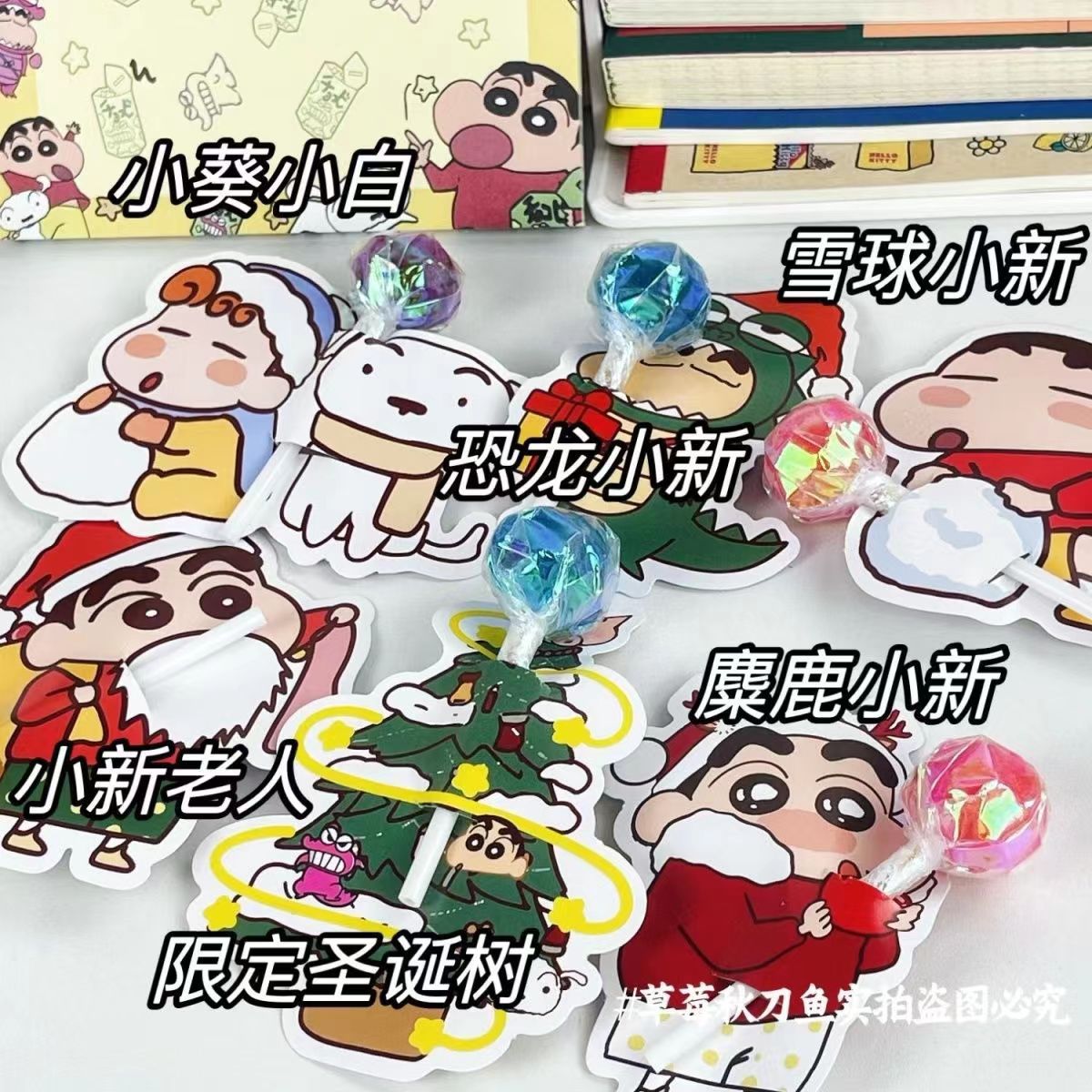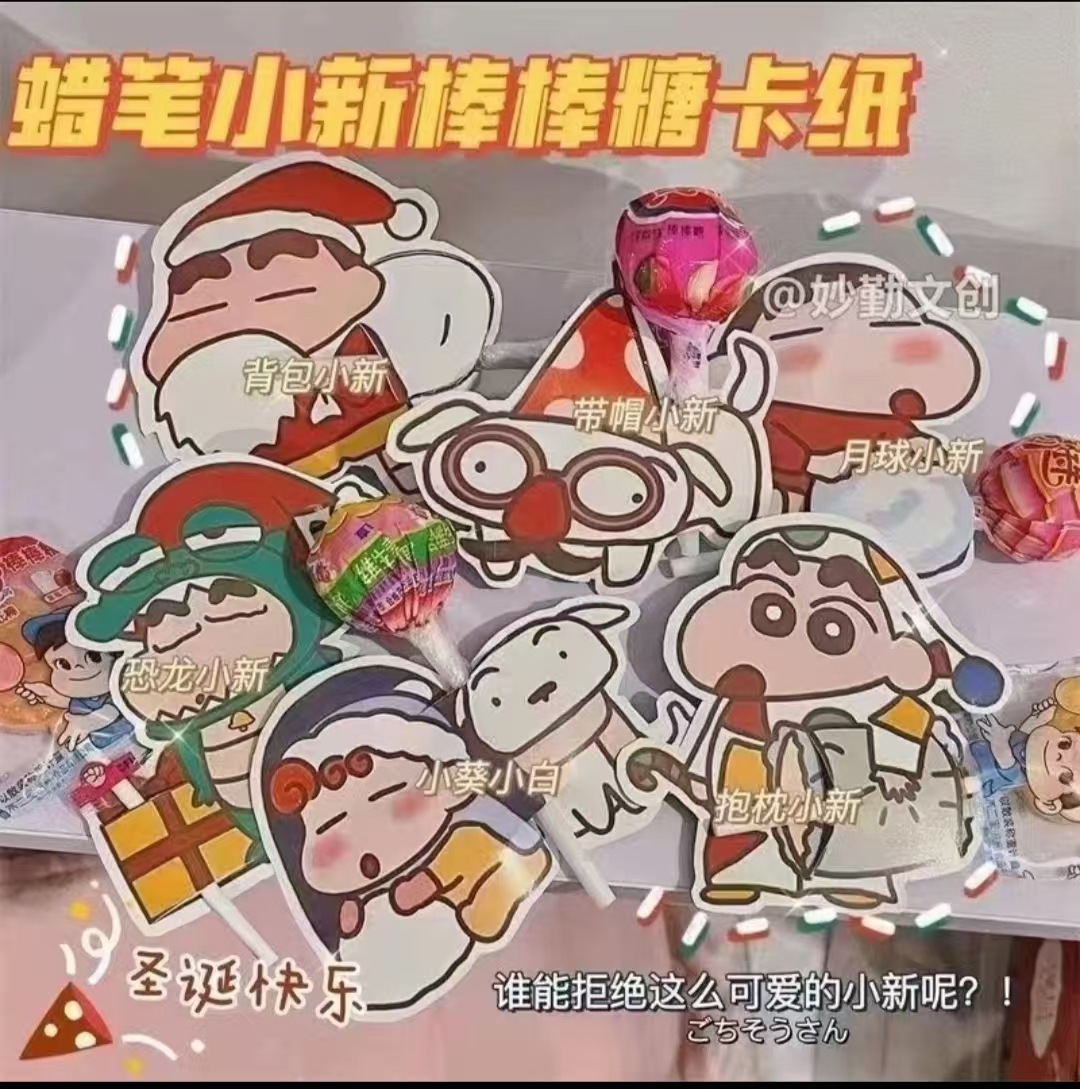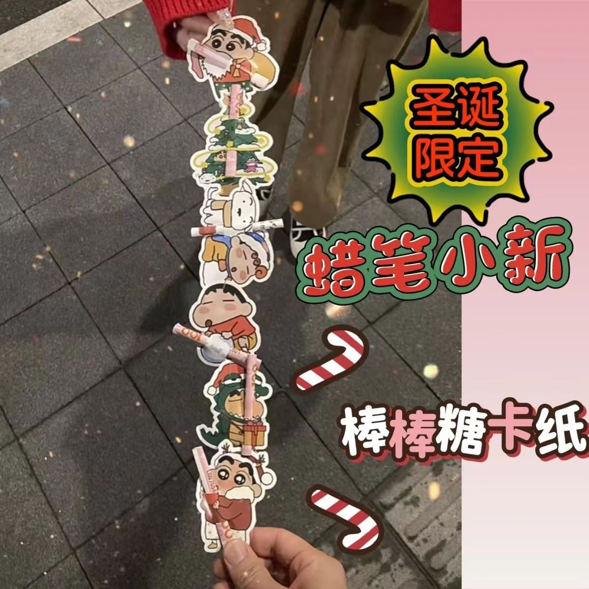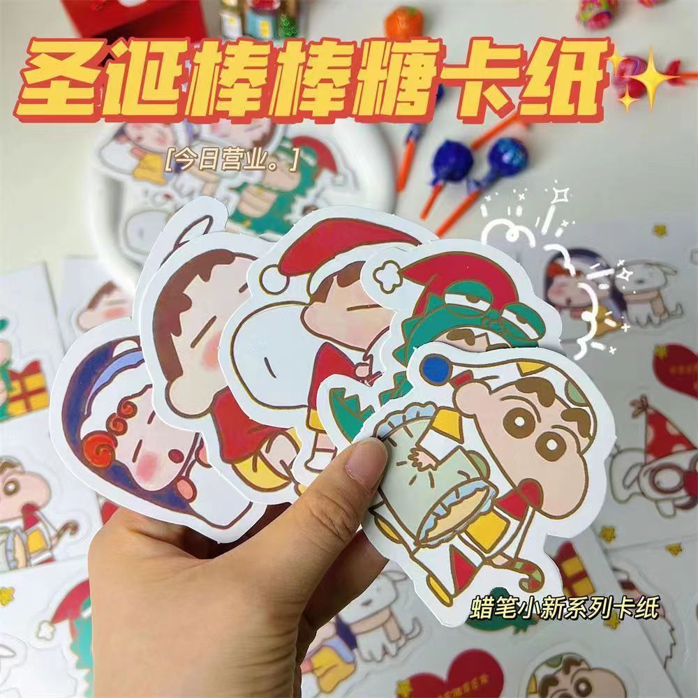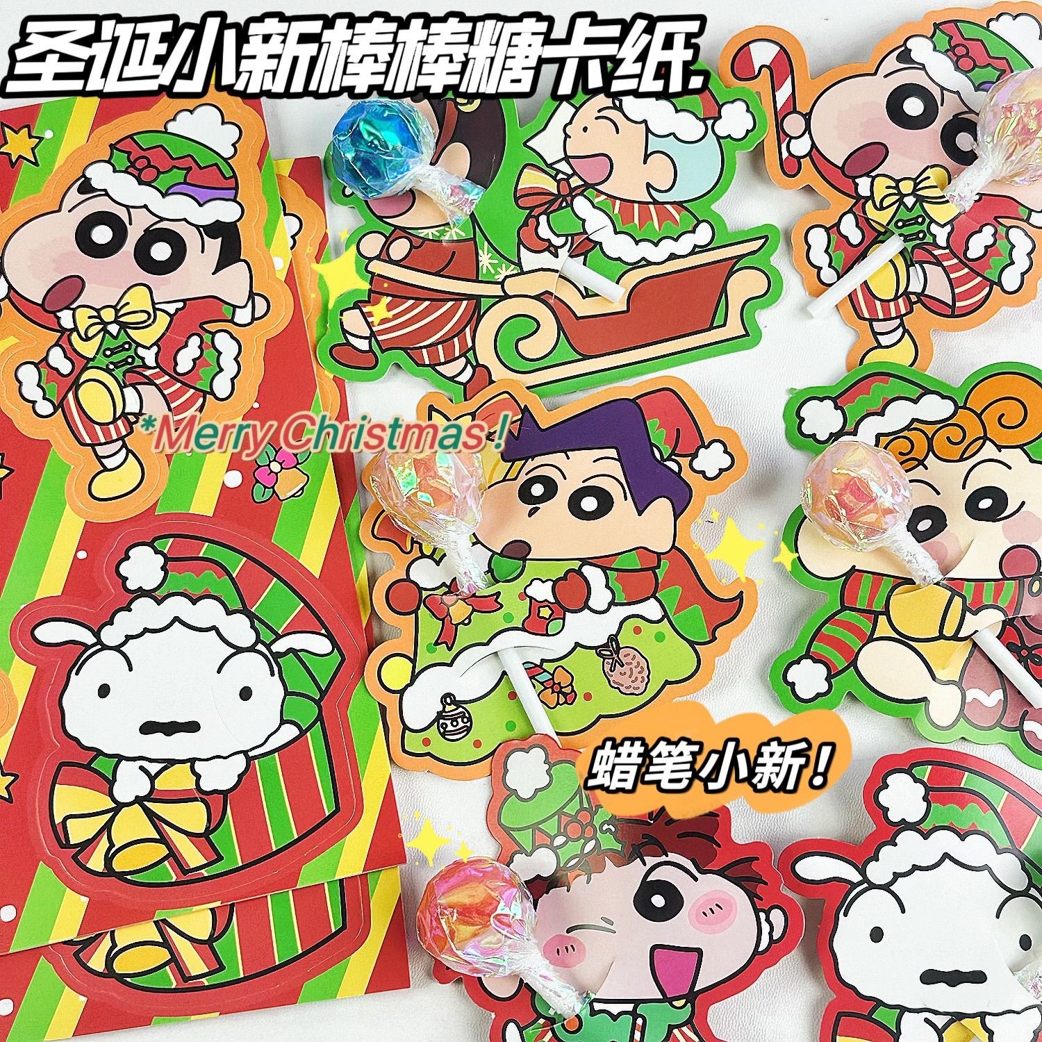 ins可爱蜡笔小新圣诞限定卡纸棒棒糖装饰圣诞卡纸六一儿童节卡纸