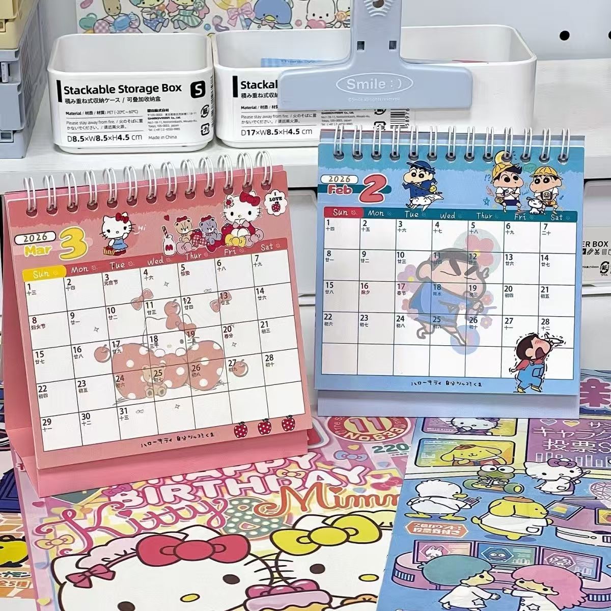 新款2026蜡笔小新台历高颜值创意卡通ins可爱Kitty日历摆件桌面男