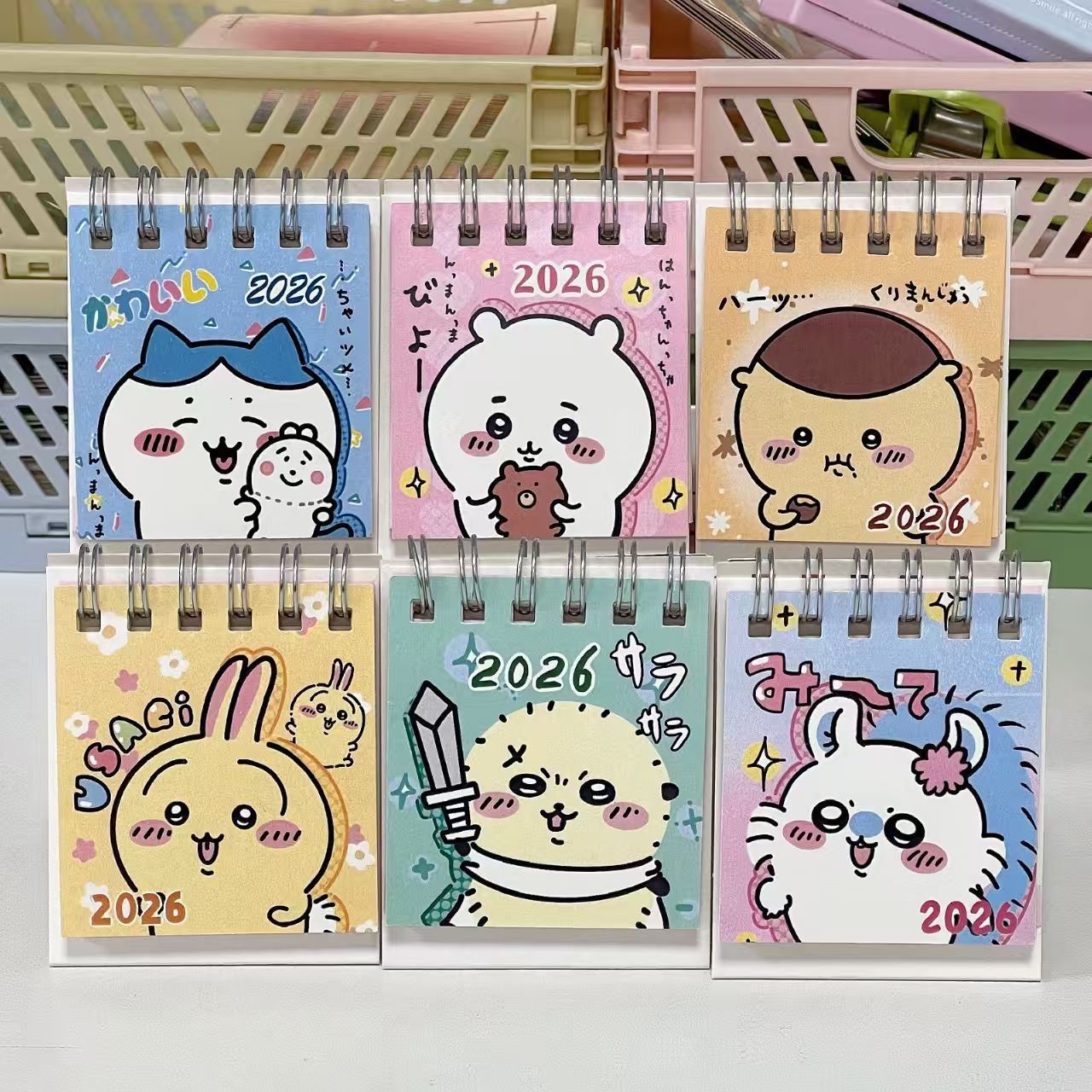 クリーム色のジイカワ2026年卓上カレンダー、インスタ映え、可愛い女の子向けミニ卓上カレンダー、ウサジ