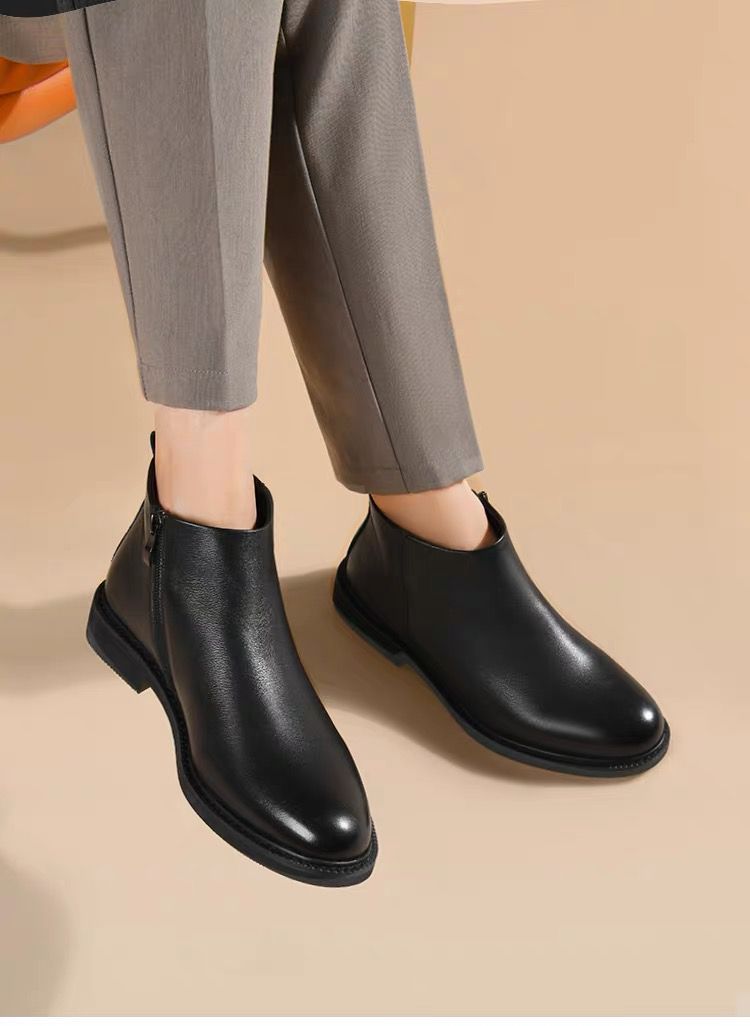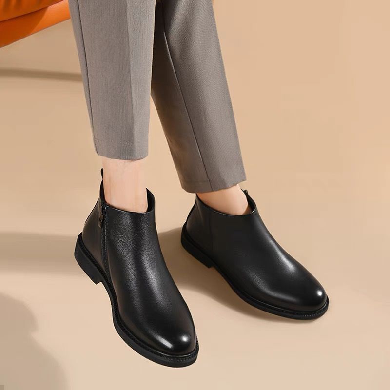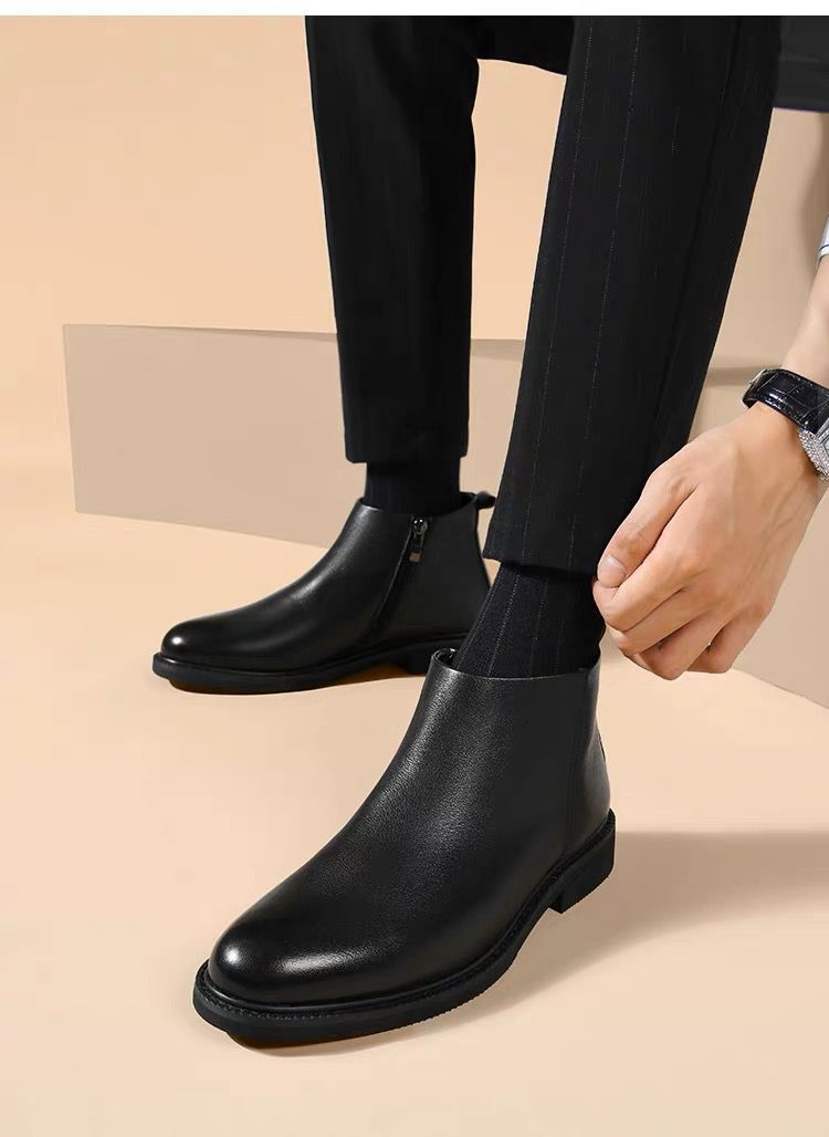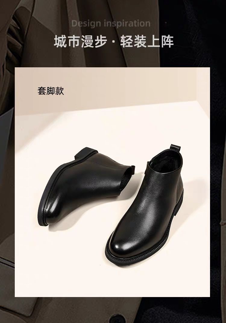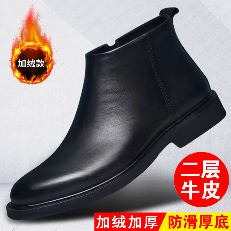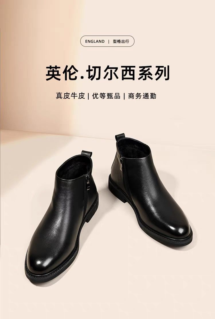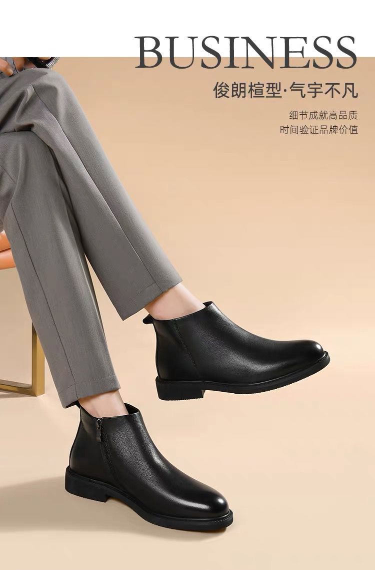 2025秋冬新款男士商务正装皮鞋男马丁靴加棉保暖棉皮鞋防水切尔西