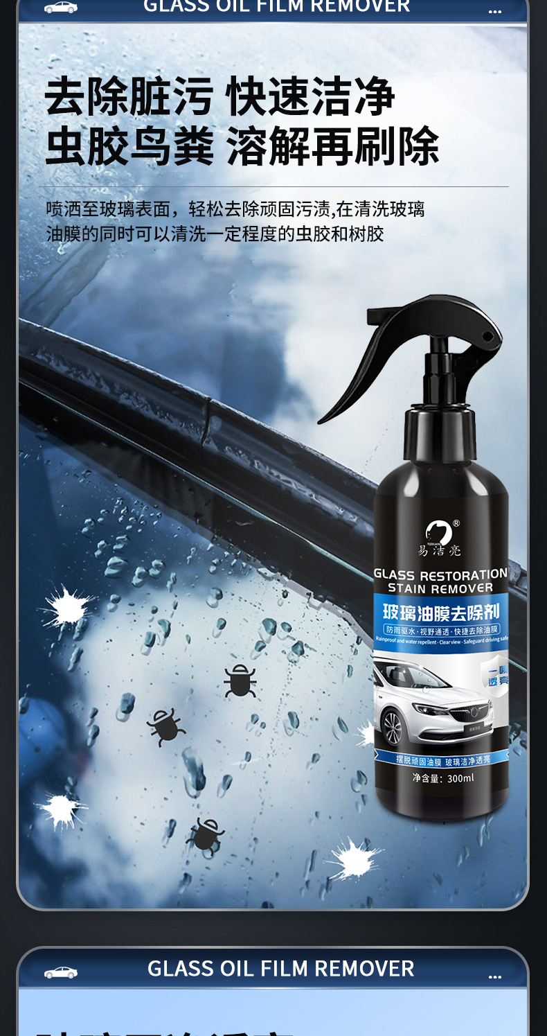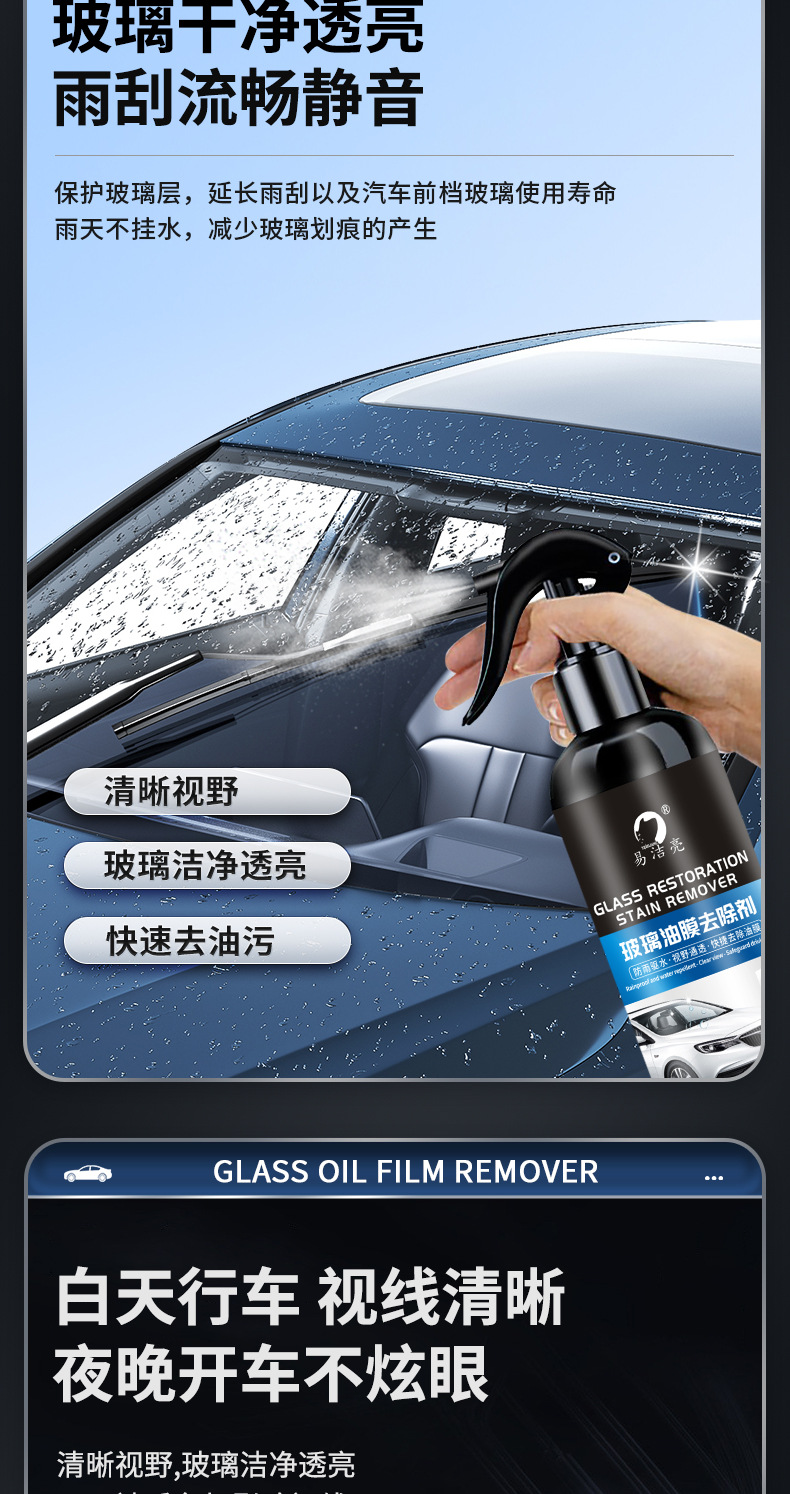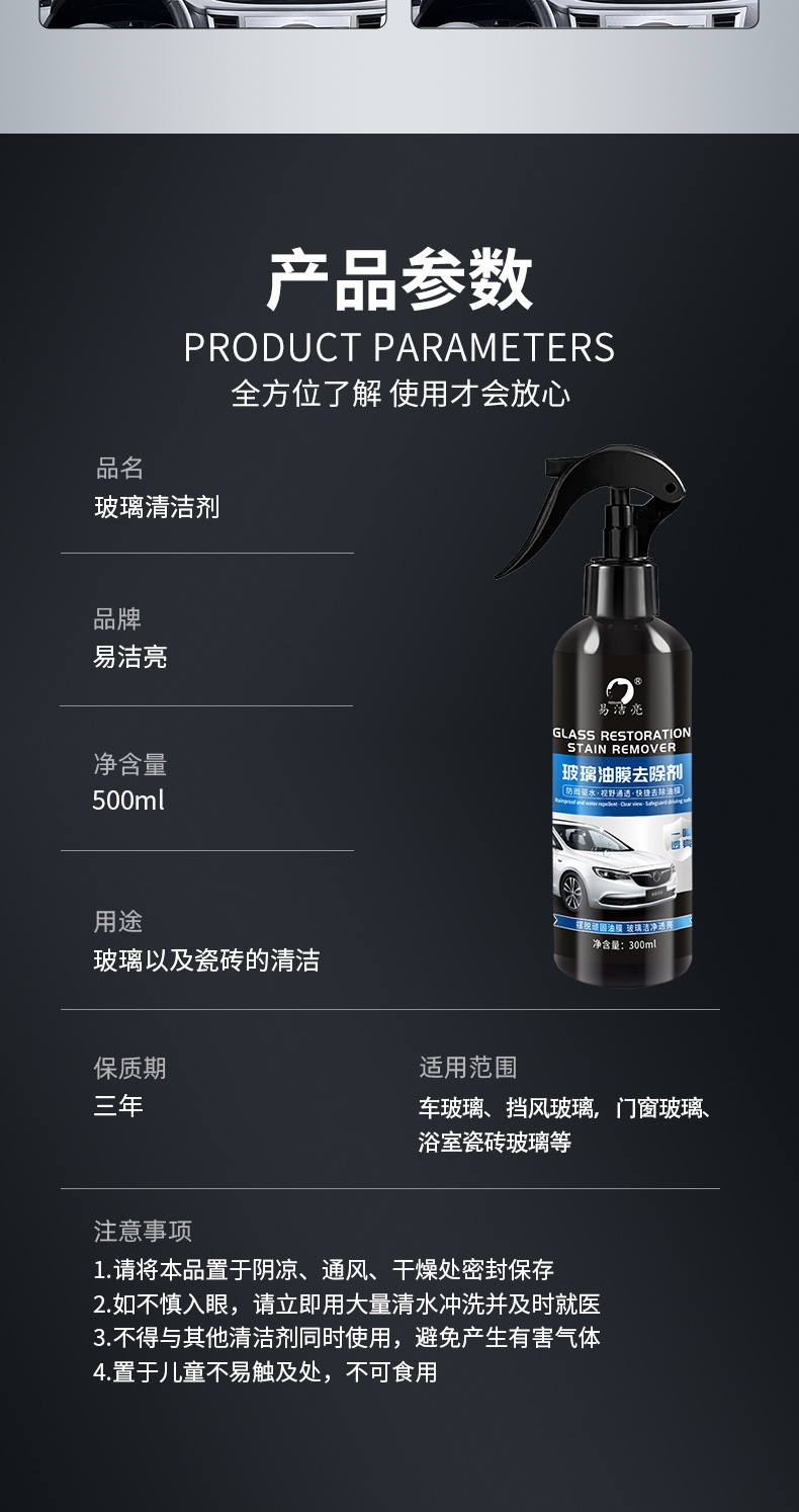 メーカー卸売り易潔亮300mlガラス油膜除去剤自動車ガラス油膜除去洗剤油膜除去膜