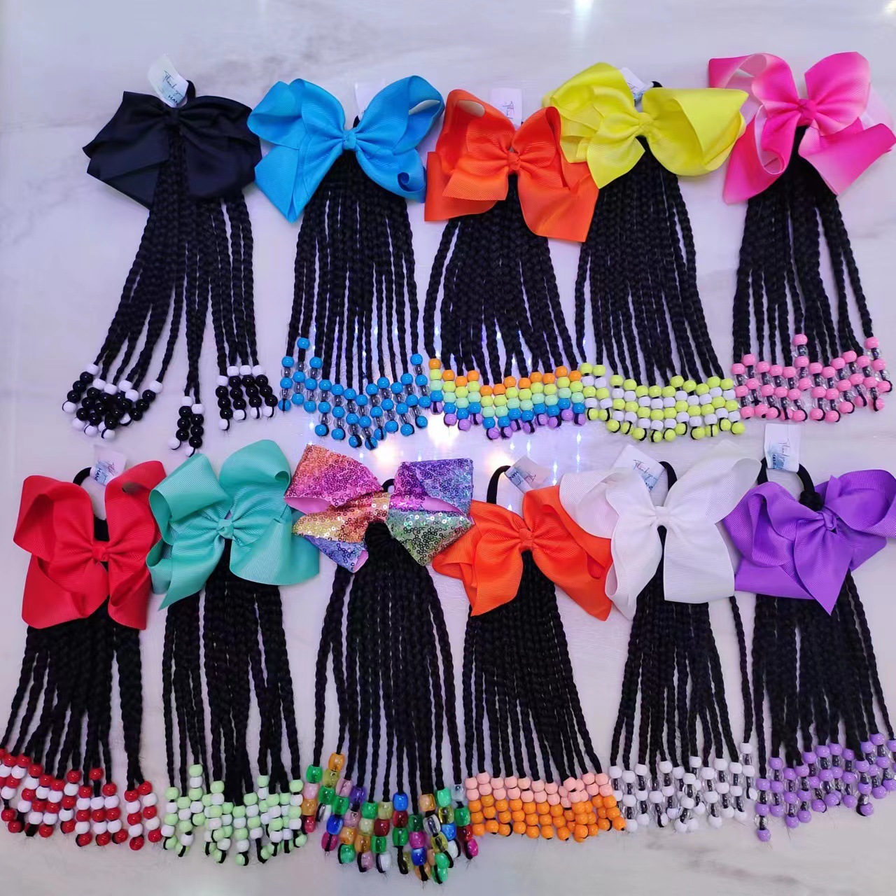 新商品の人気子供のビーズの汚いお下げのかつらの蝶結びの汚いお下げの子供の髪飾り