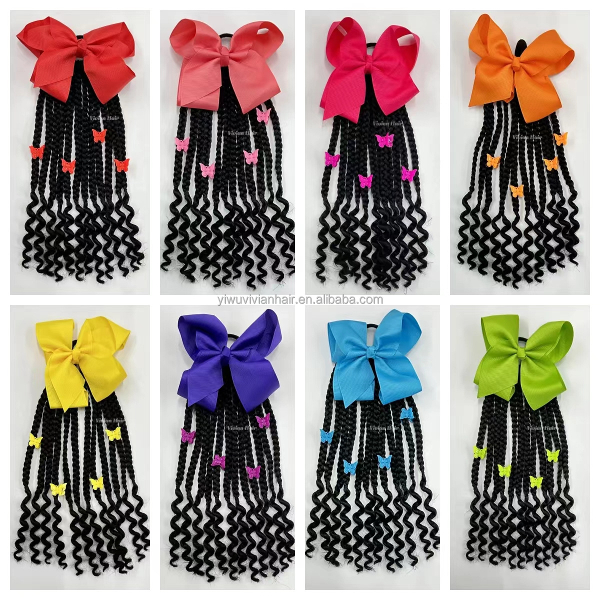 国境を越えた新型アフリカの人気リボン子供蝶髪カード馬尾お下げアフリカ子供髪飾りかつらお下げ