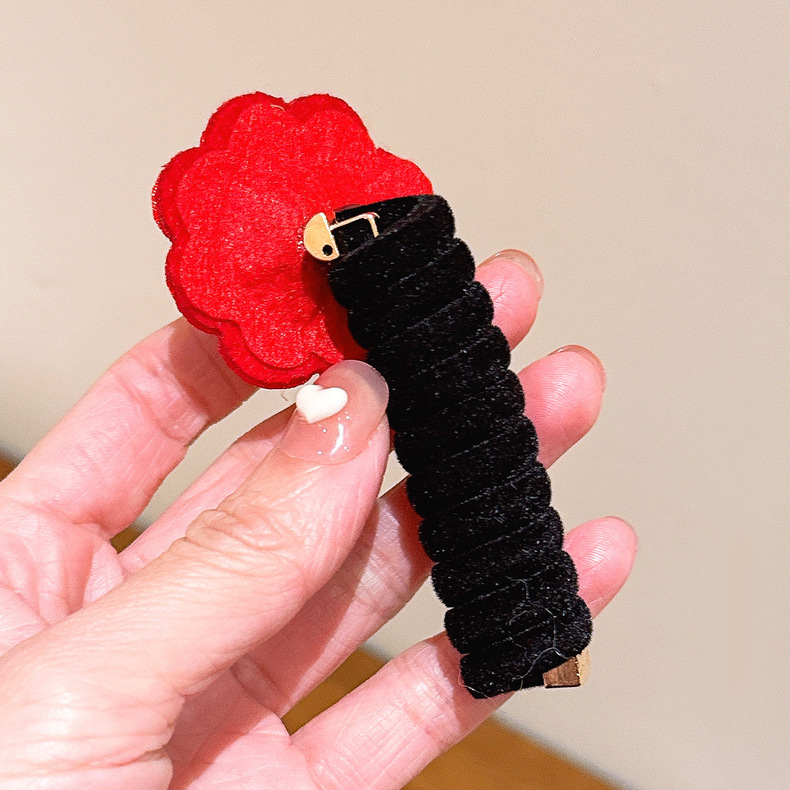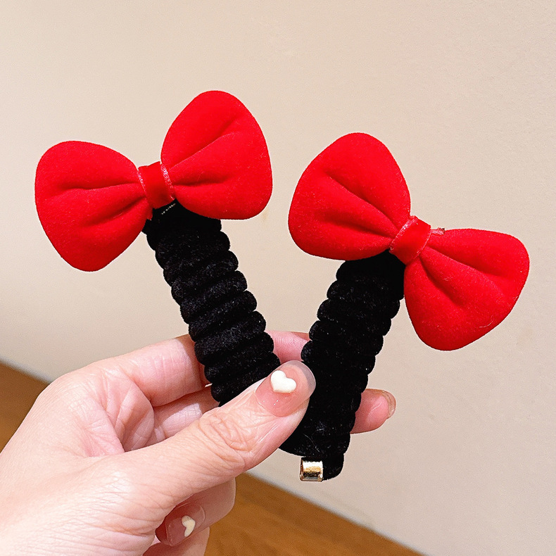 新年の赤い編み物の電話線の髪ひもの子供の髪ひもの高い顔の値は髪の筋の髪飾りを傷つけません。