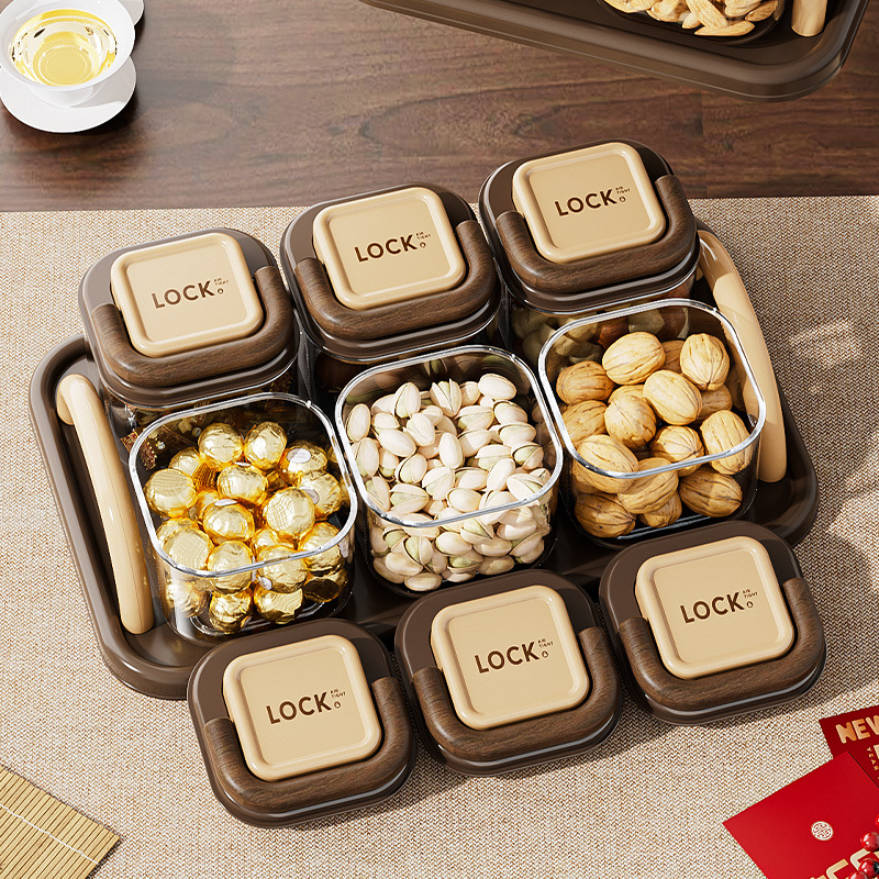 26年新款水果盘客厅带盖负压密封胡桃木分格透明零食盘干果盒