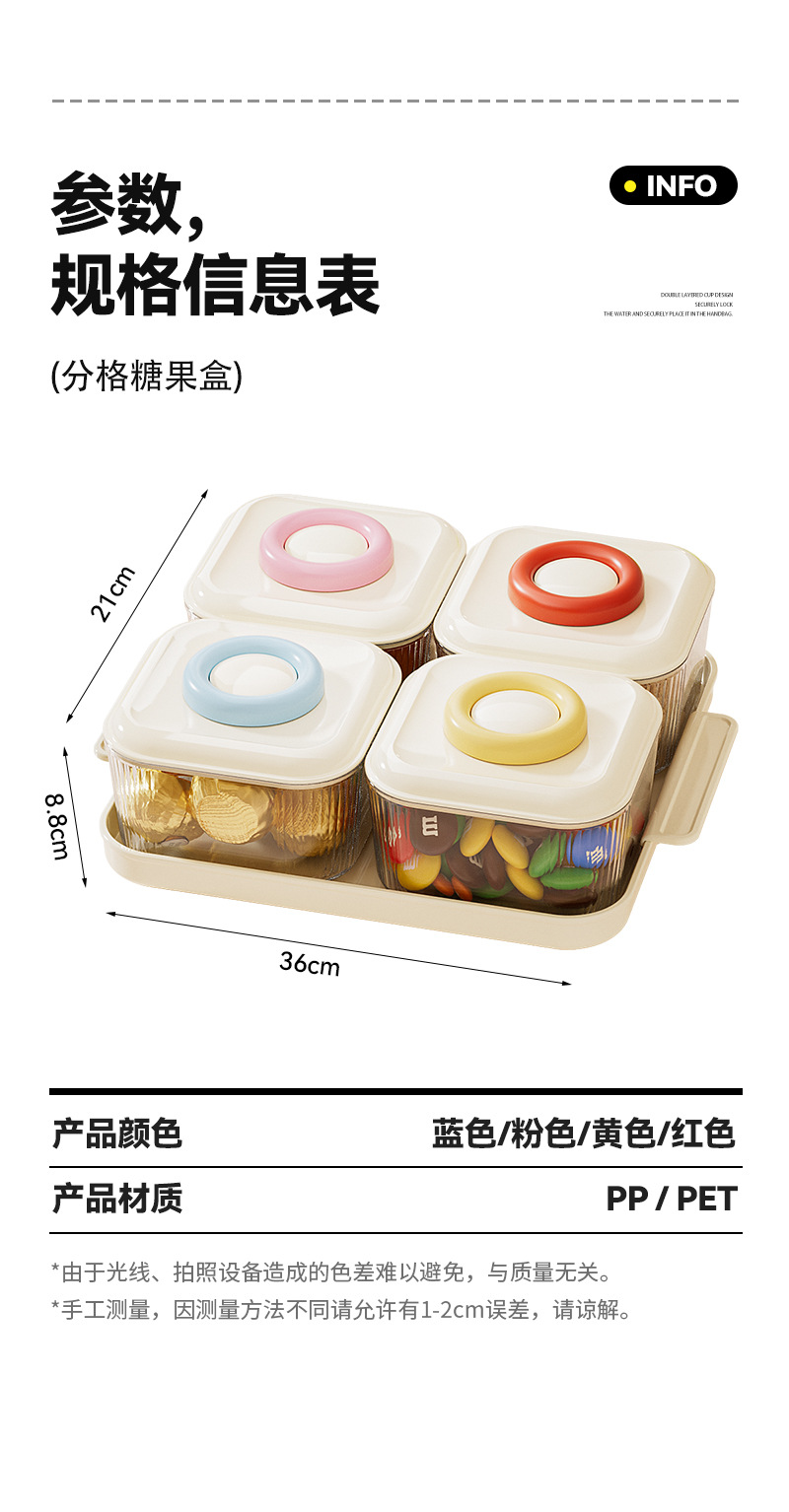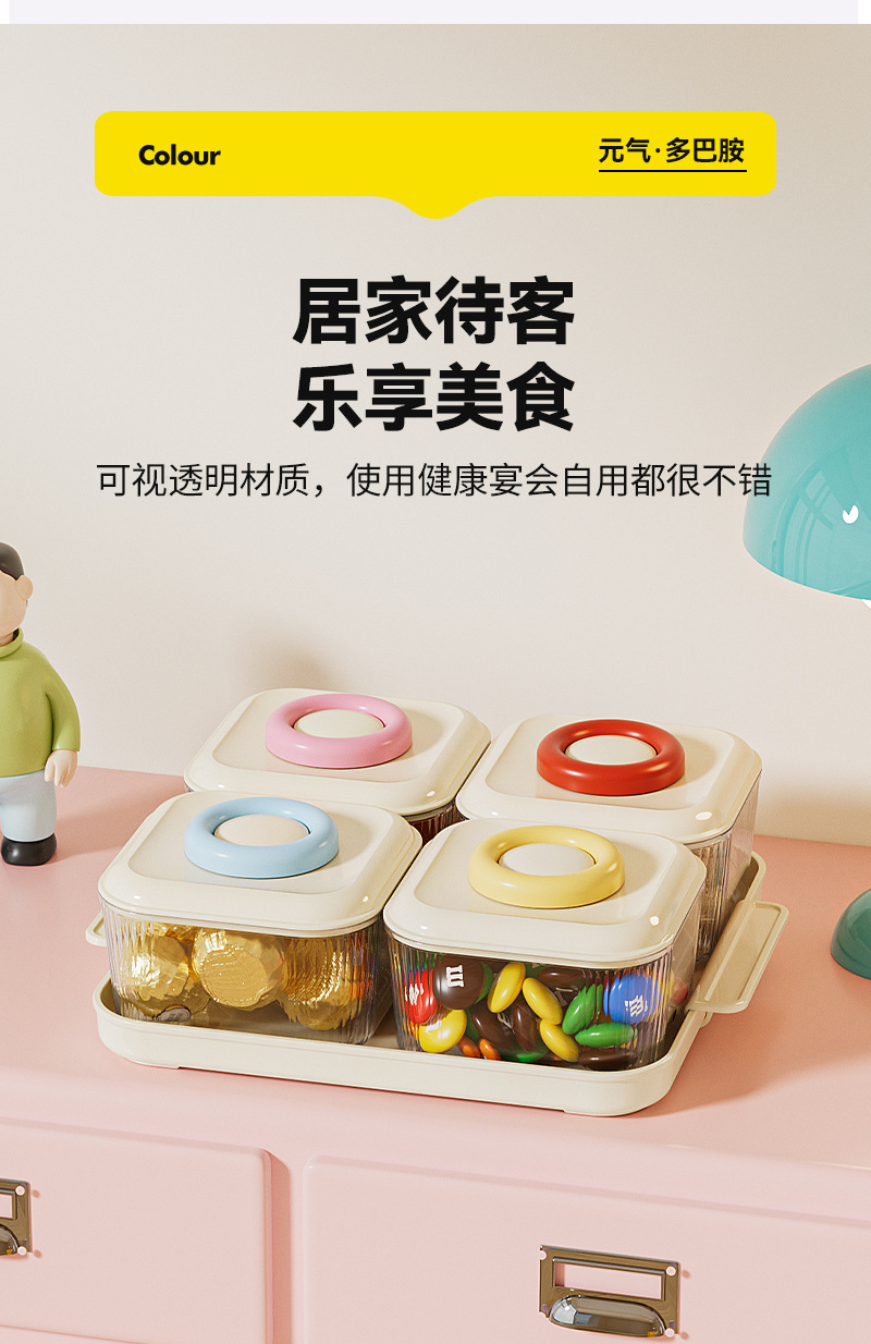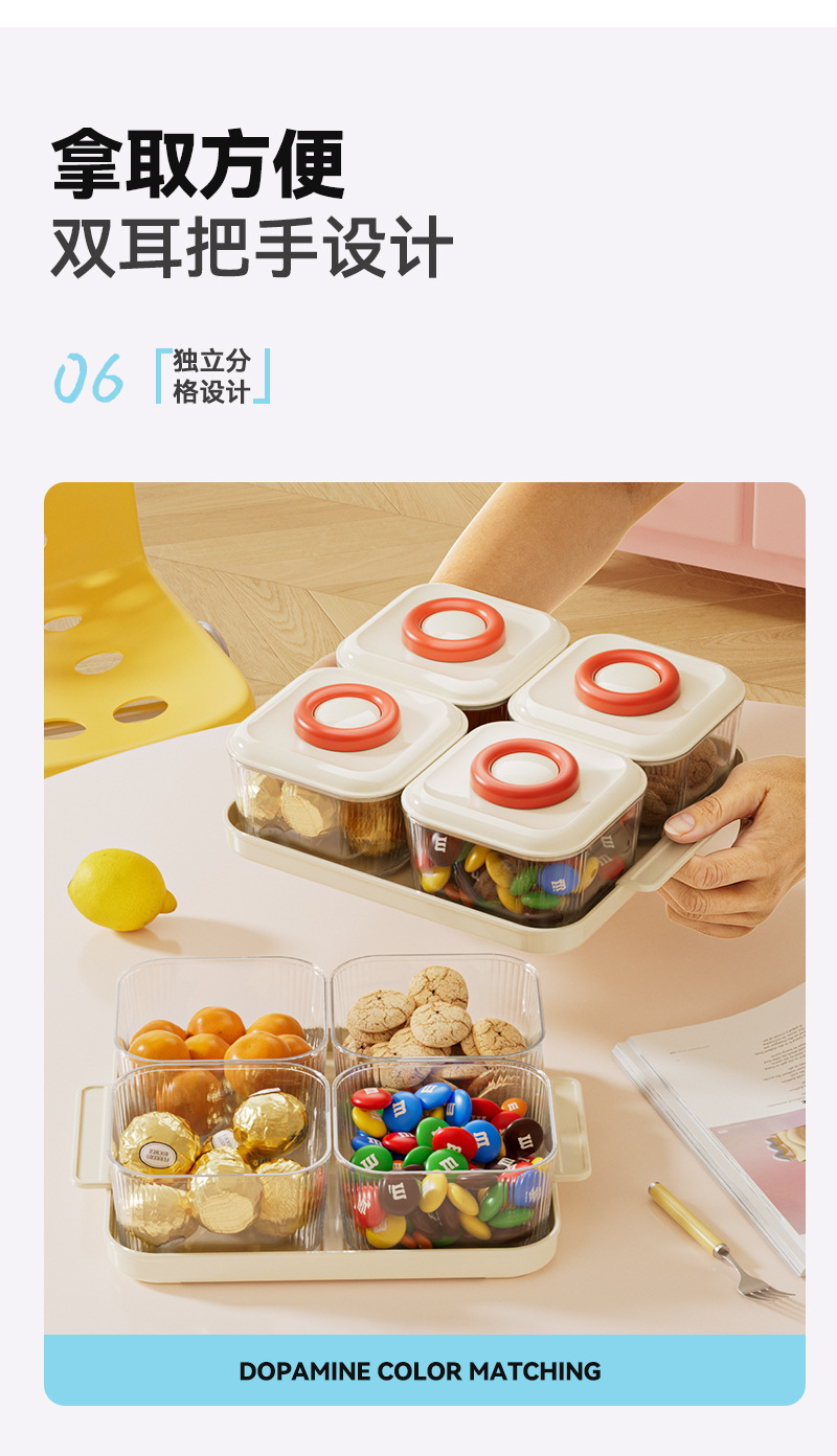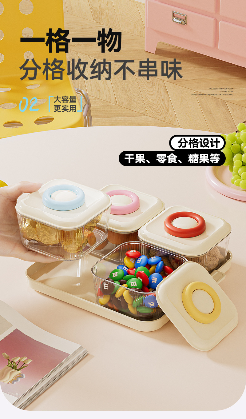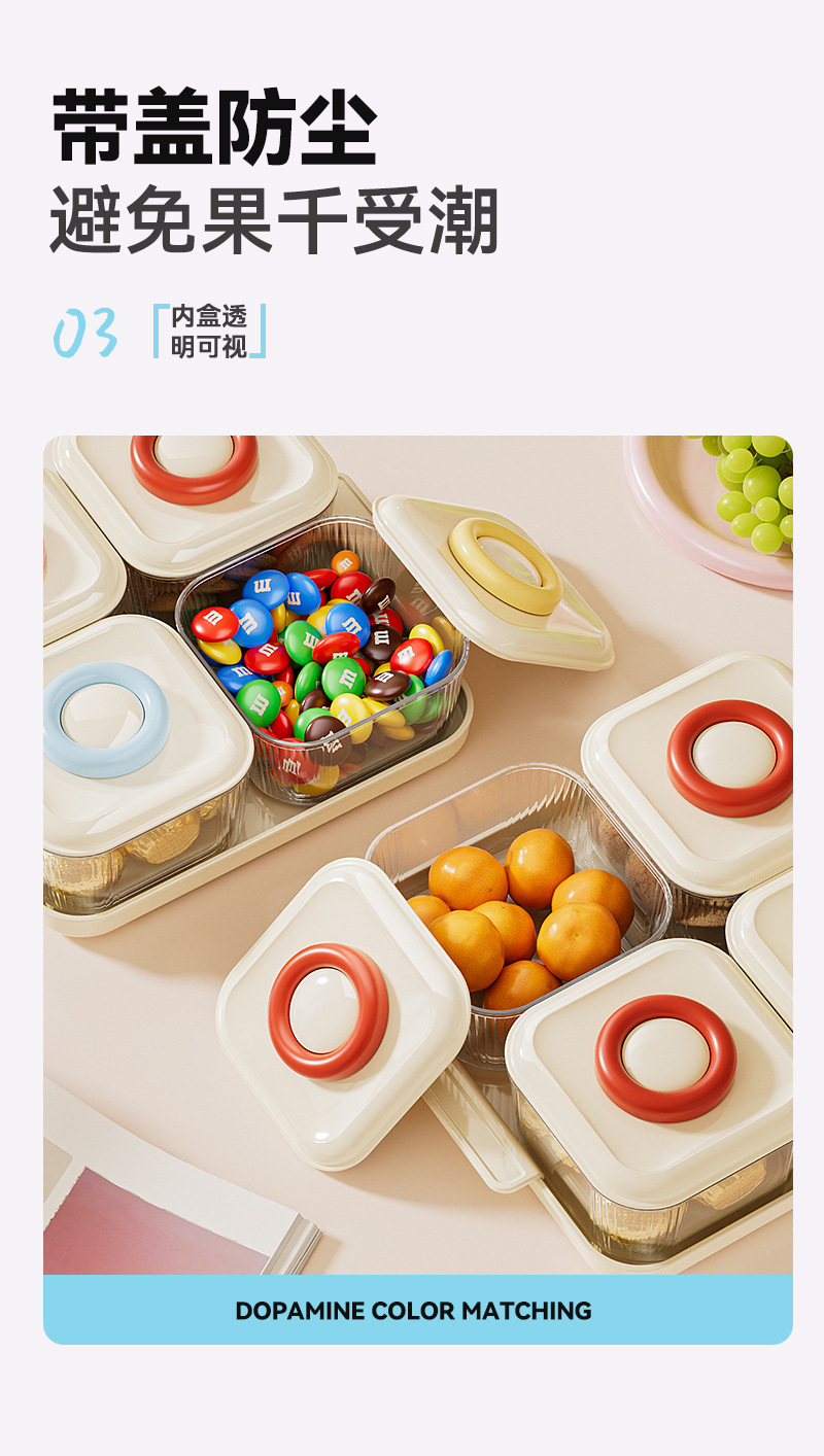 26年新作キャンディボックス 家庭用大容量仕切り収納 両耳ハンドル付きトレイ ドライフルーツプレート収納ボックス
