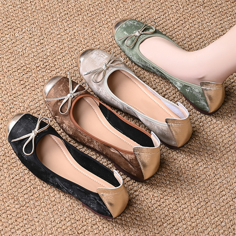 柔らかい底の平の靴の女性の2024秋の新型の丸い頭の小さい香風の女性の豆の靴は色を合わせます。