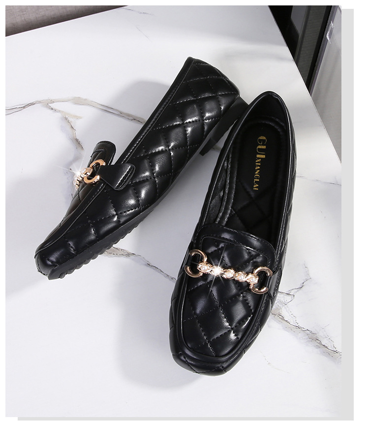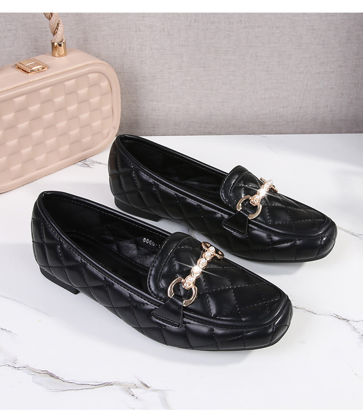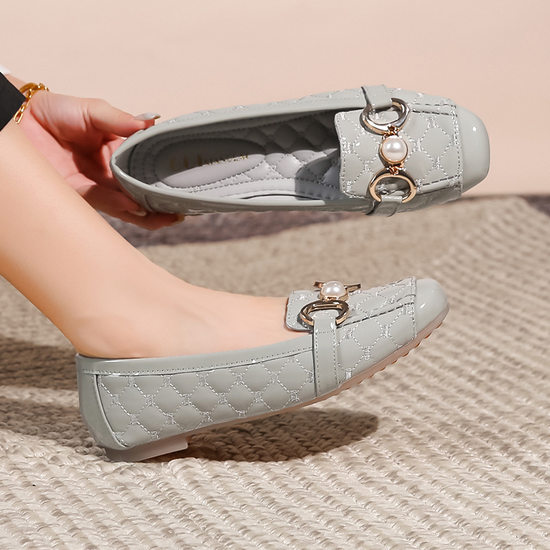 2023春の新型女性靴ソフト底豆靴女性大サイズ角頭快適欧米シングル靴女性フラット靴4142